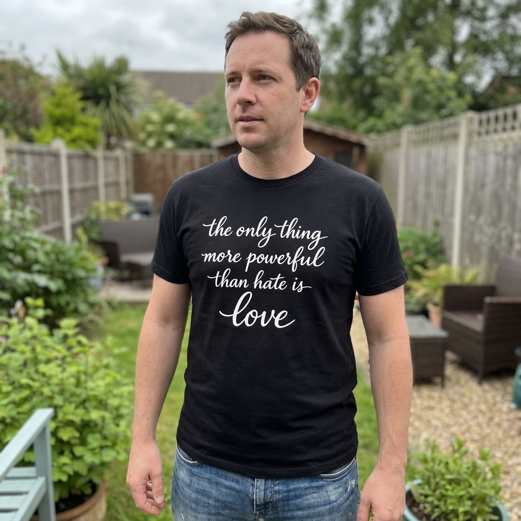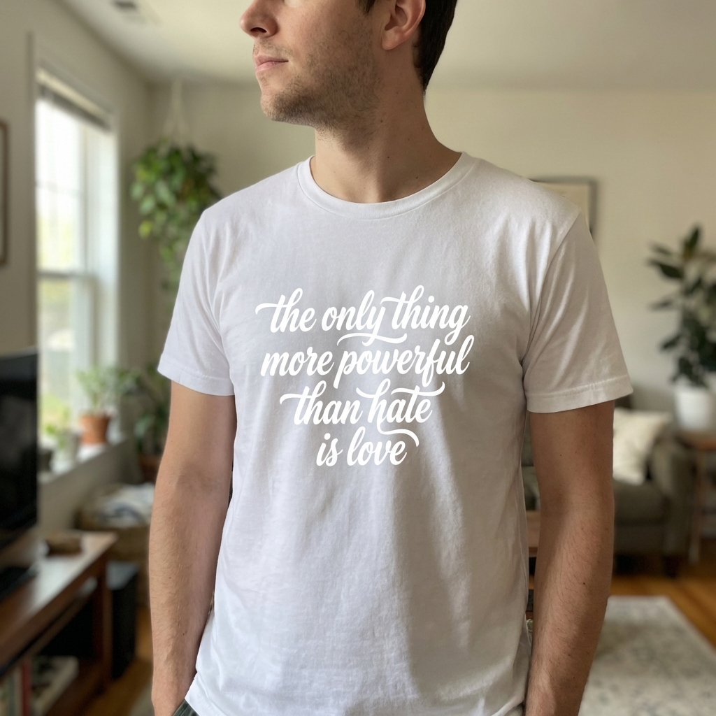 Okay so my 'Love Over Hate' shirt just arrived and I'm really impressed. The abstract design looks awesome, and the fabric is surprisingly soft and just comfy to wear all day. Big thumbs up for a cool top with a positive vibe!
