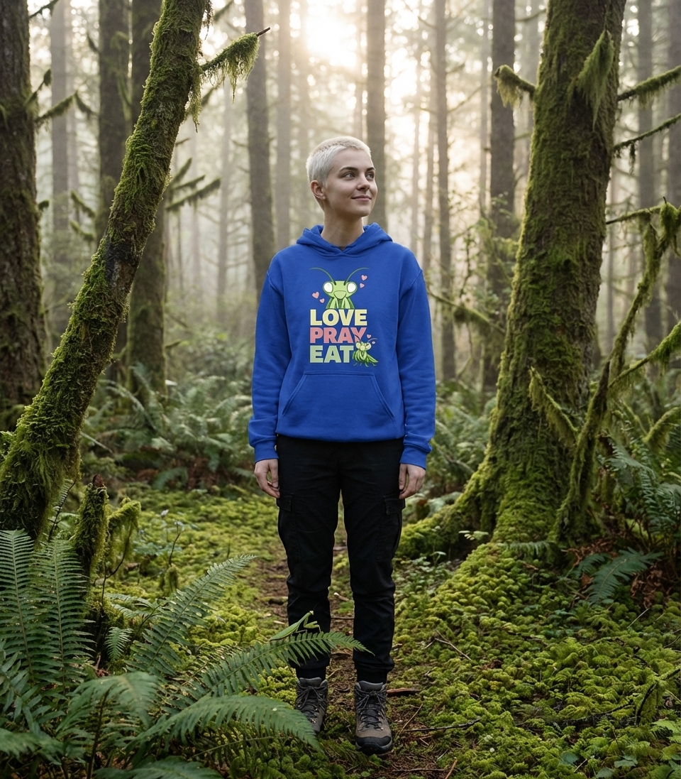 Yes! Check the style selector above to see all available options including hoodies and sweatshirts for the Love Pray Eat Mantis graphic.