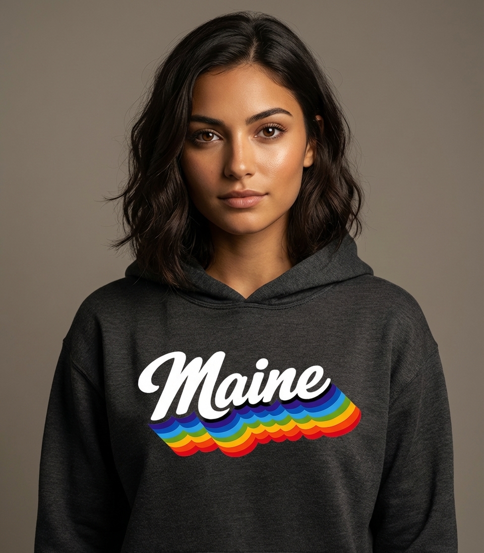 Yes! Check the style selector above to see all available options including hoodies and sweatshirts for the Maine Retro Rainbow graphic.