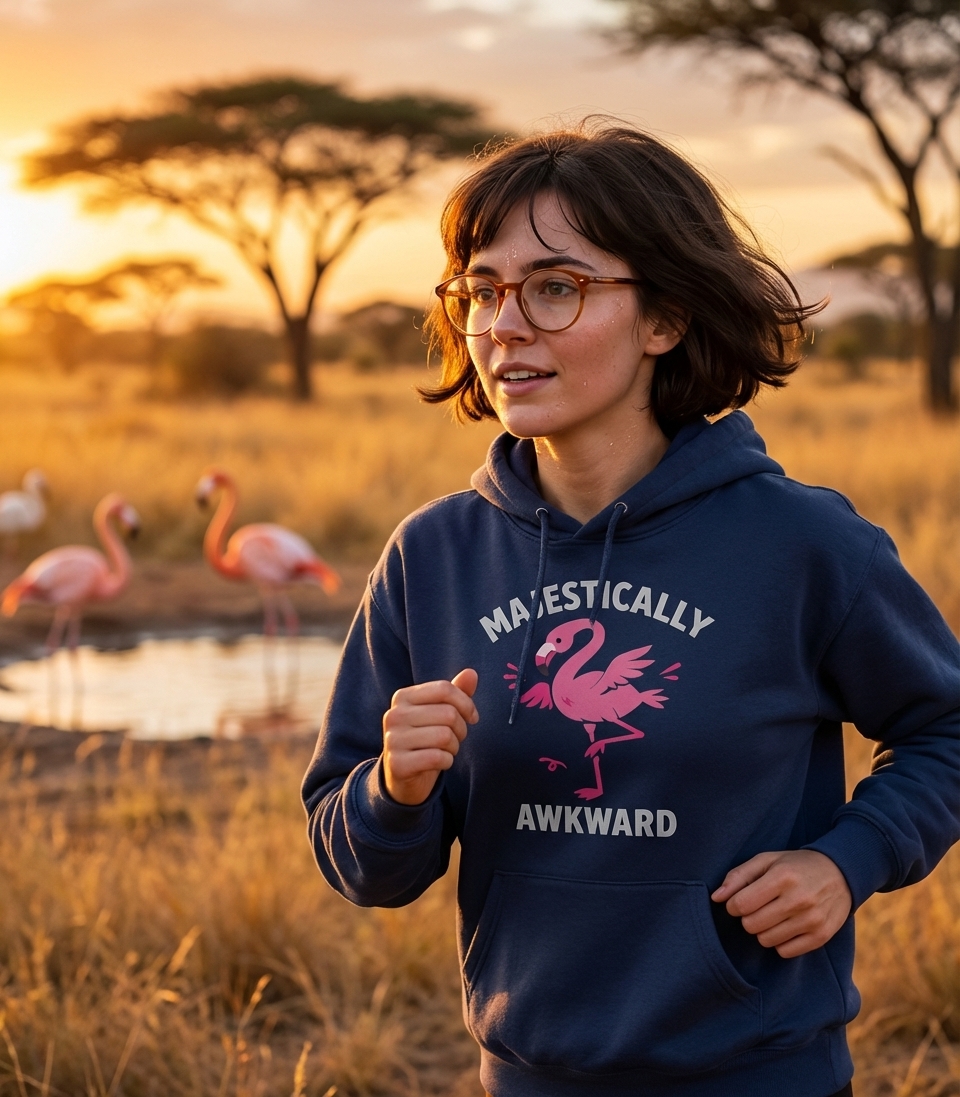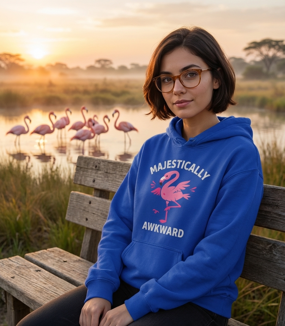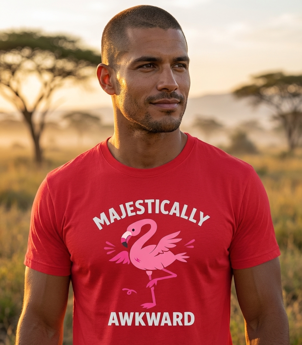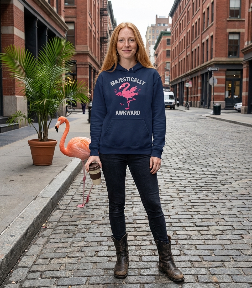 The phrase "Majestically Awkward" celebrates the charm of being unique, graceful yet a little clumsy, and perfectly imperfect. It's a humorous nod to those who carry themselves with an unexpected mix of confidence and endearing awkwardness.