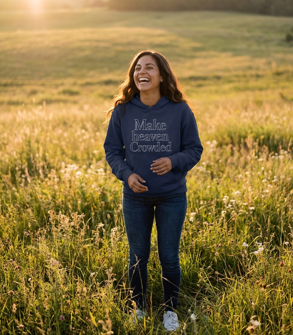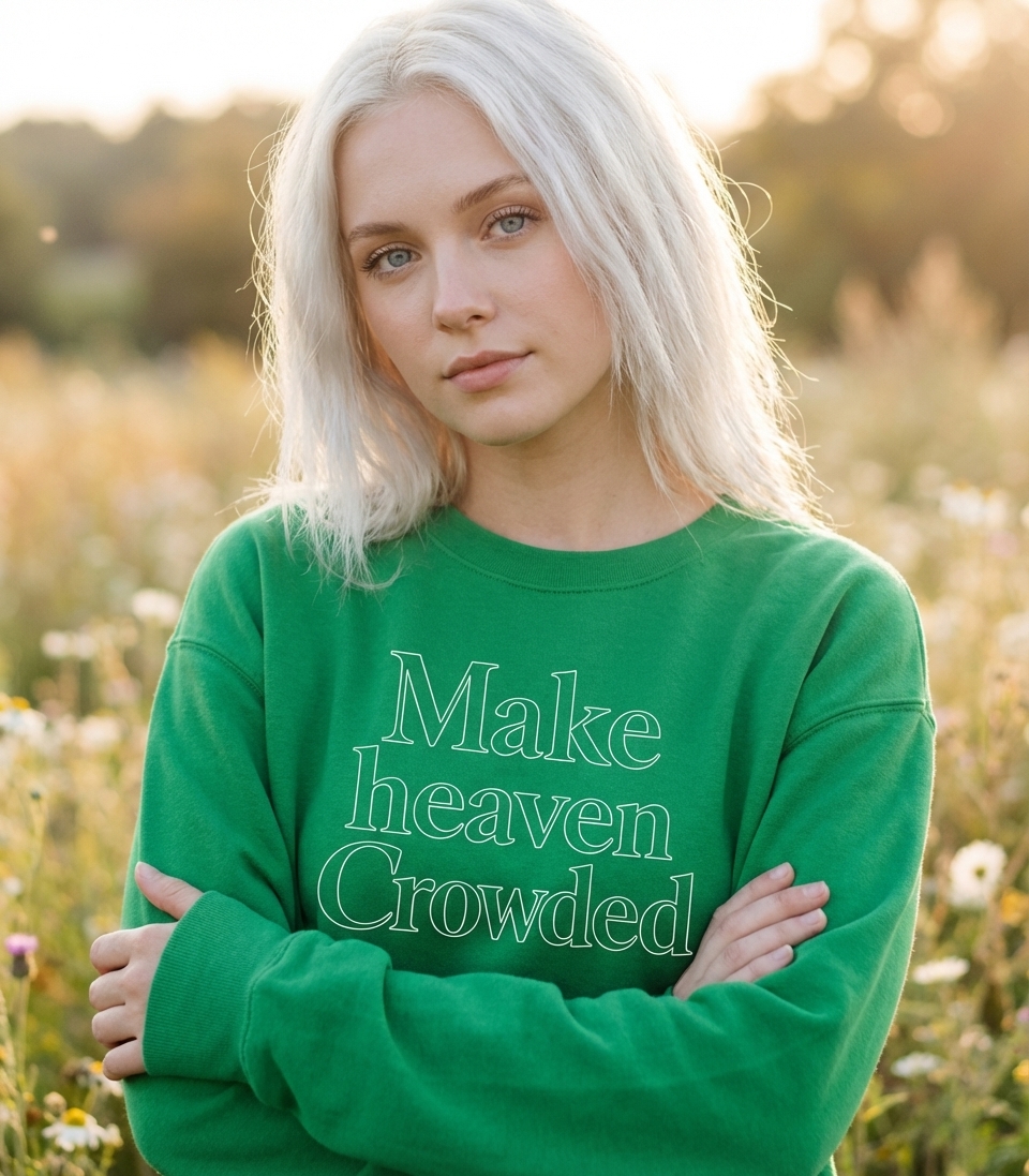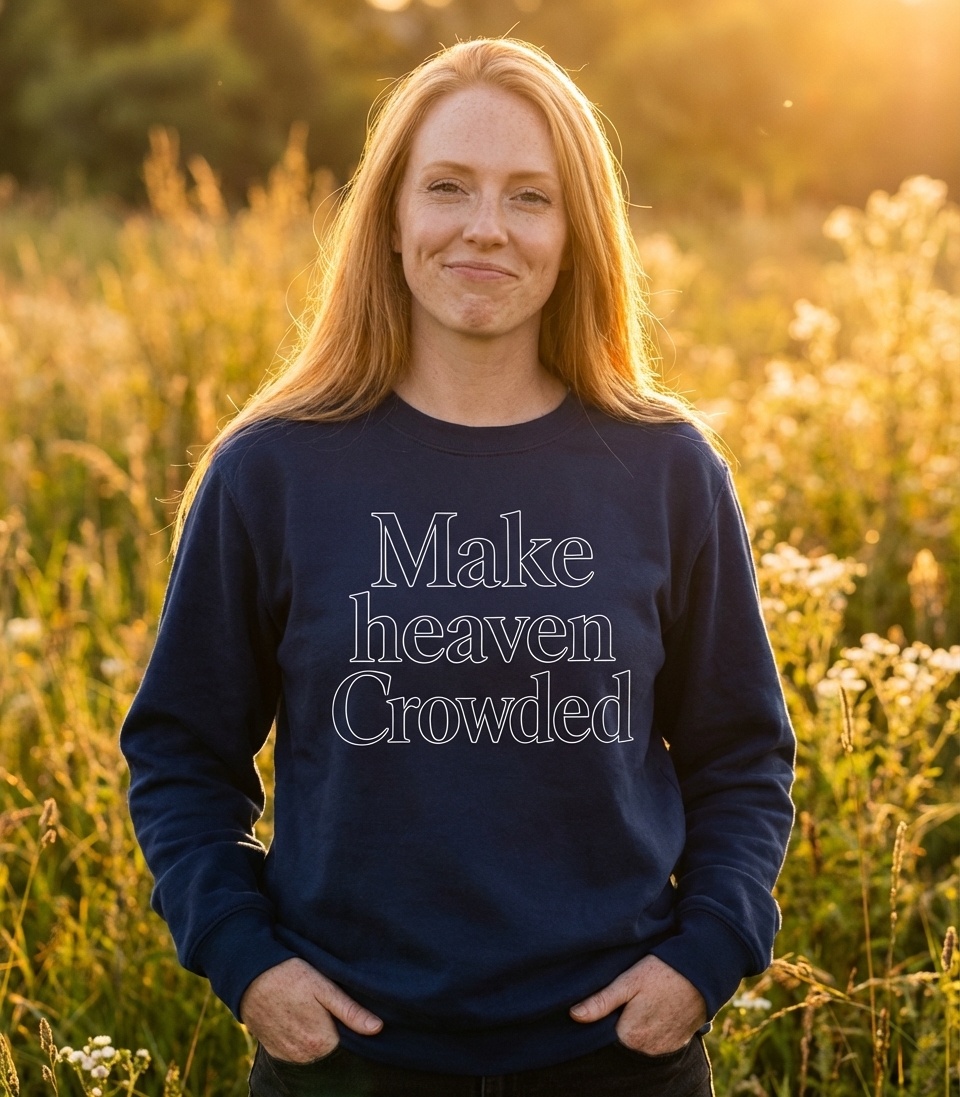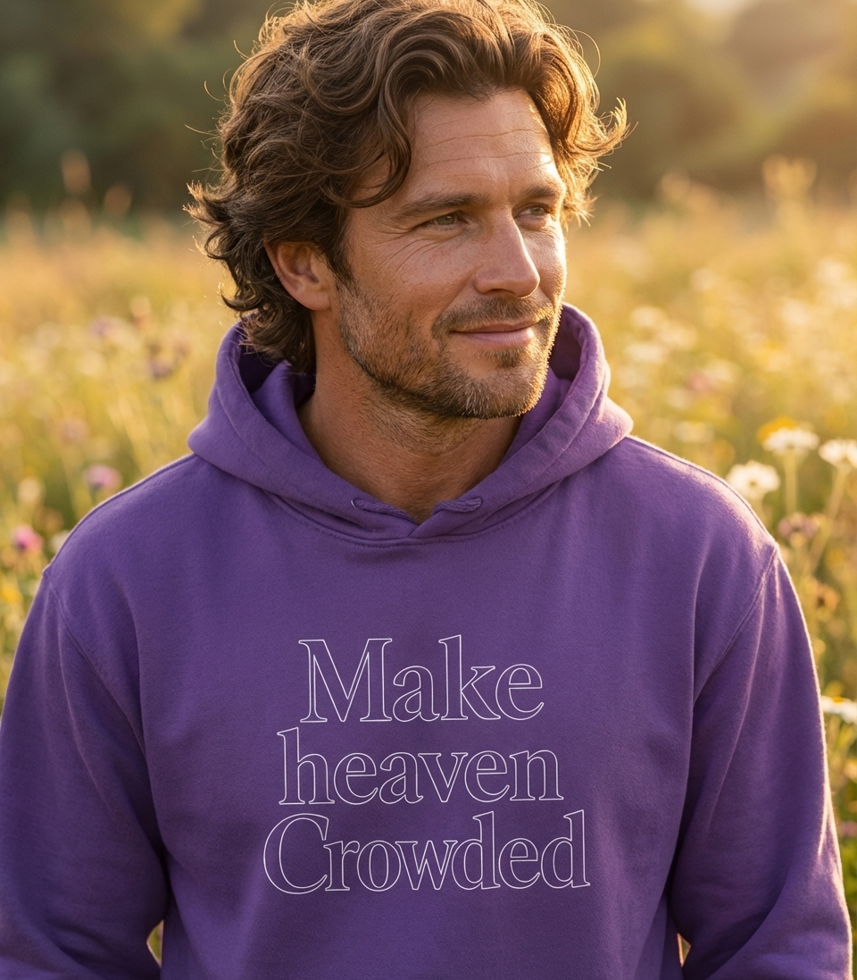 The "Make Heaven Crowded" phrase captures the lifestyle of devoted Christians who seek to share their faith, inspire others, and live a purposeful life.