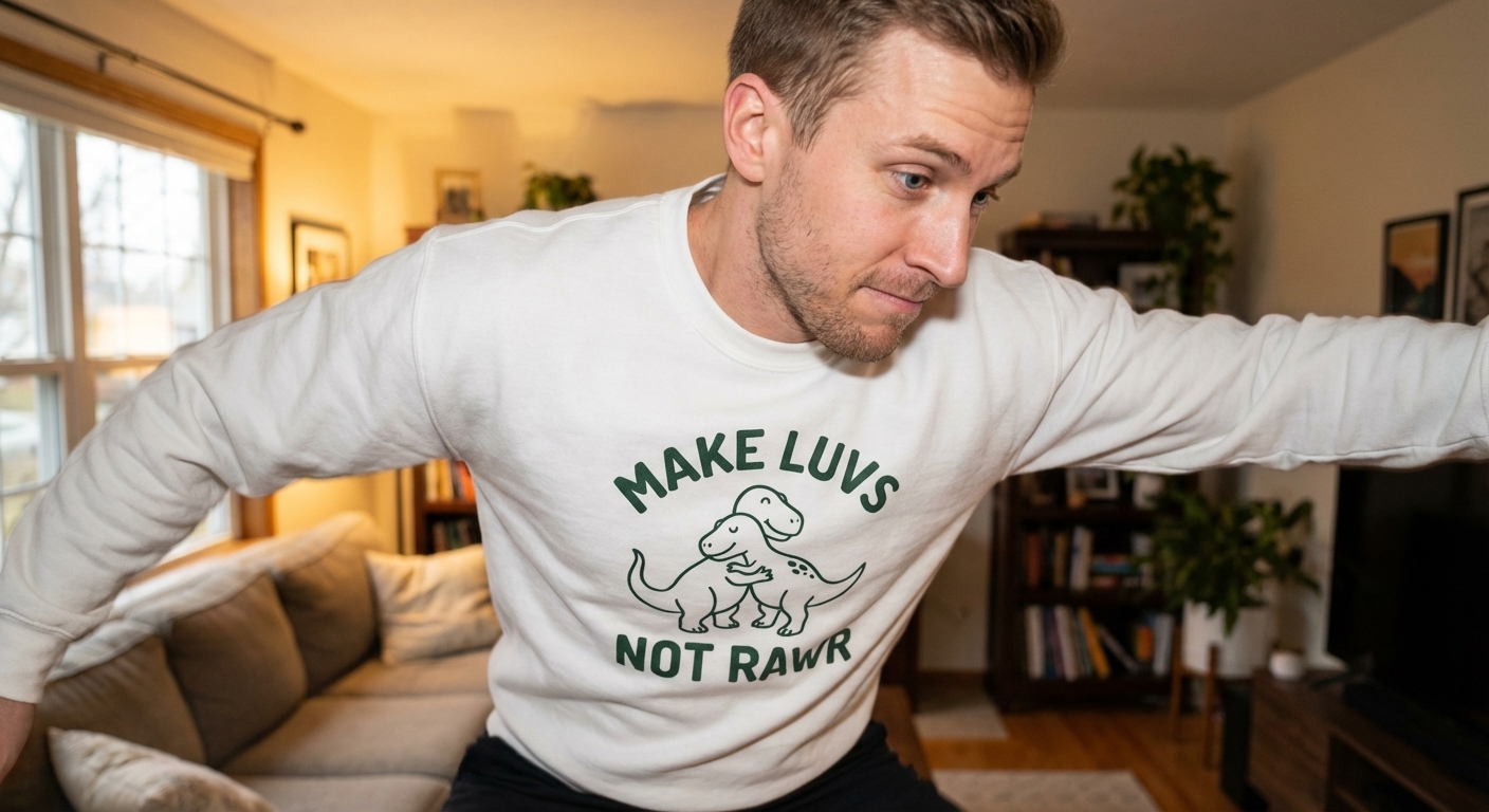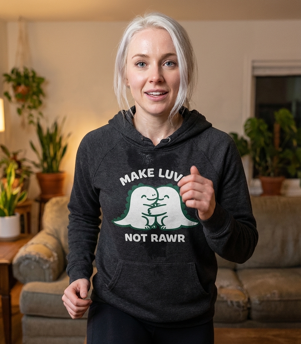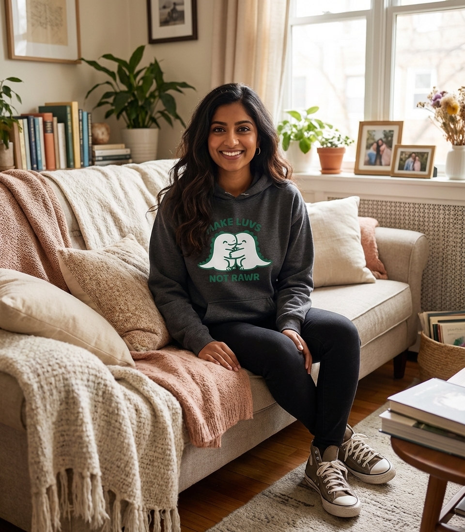 The phrase "Make Luvs Not Rawr" is a delightful, punny twist on the classic anti-war slogan "Make Love Not War." It playfully encourages affection, kindness, and peaceful interactions over aggression or conflict, using the universally recognized dinosaur sound for humorous effect.
