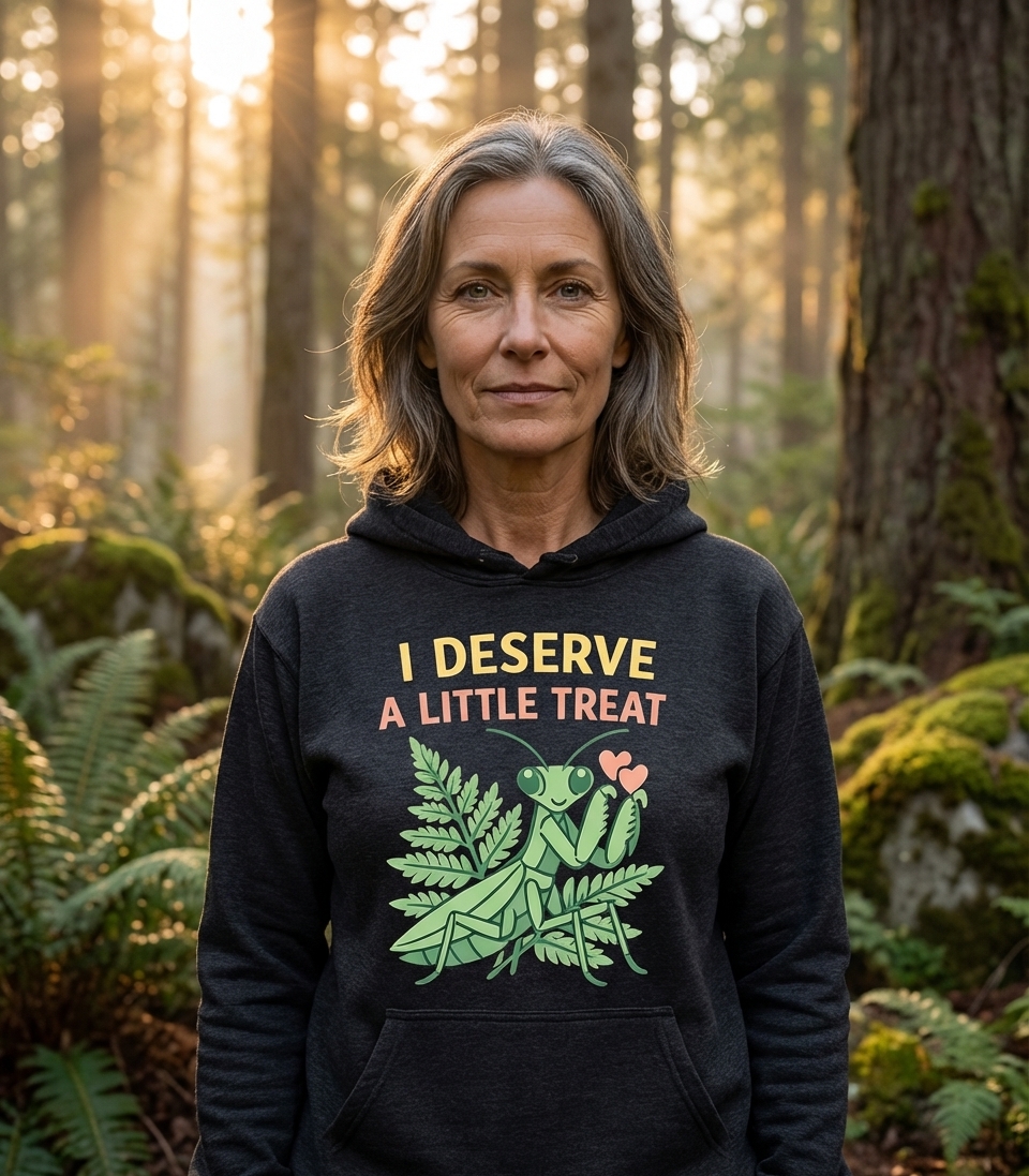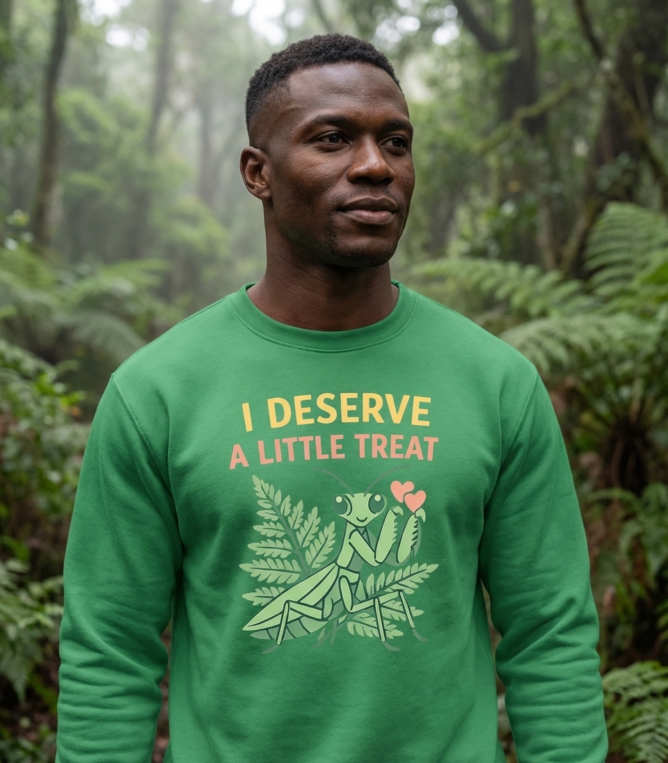 The 'I Deserve A Little Treat' phrase captures the whimsical attitude of anyone who loves cute insects and believes in rewarding themselves with small, joyful moments.