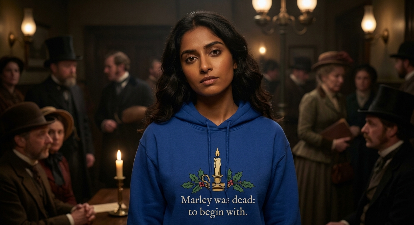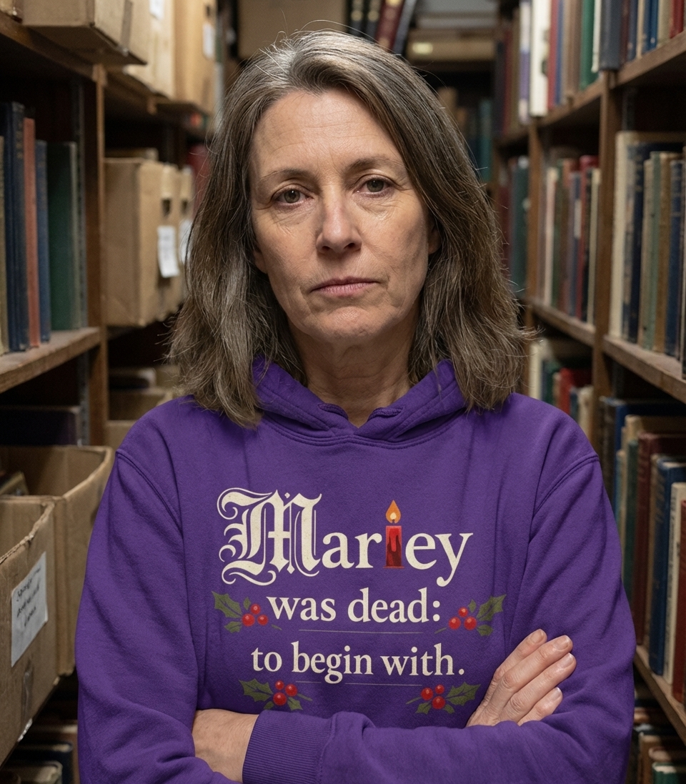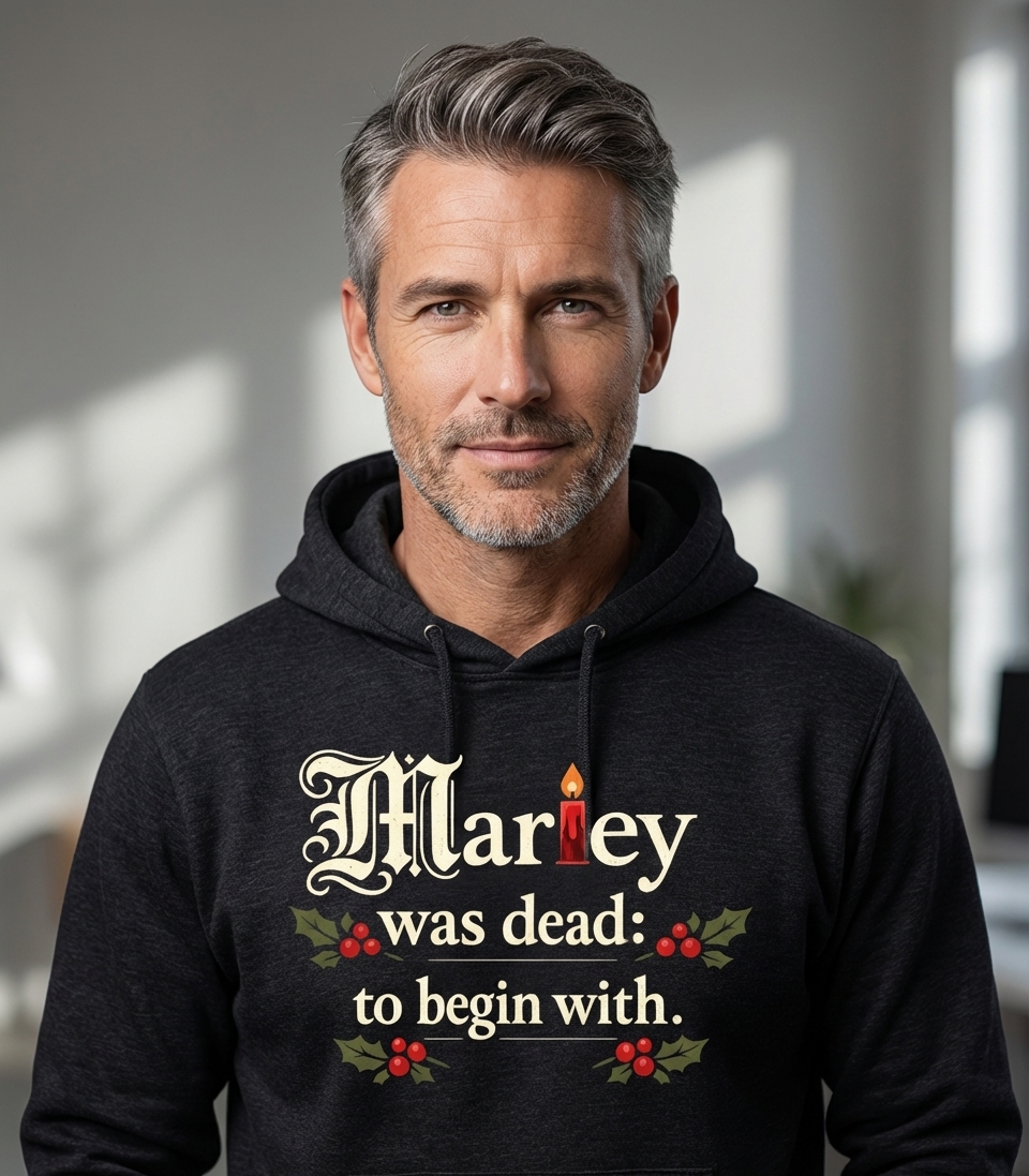 The phrase 'Marley was dead' captures the lifestyle of classic literature enthusiasts who enjoy reading, discussing, and celebrating timeless holiday stories.