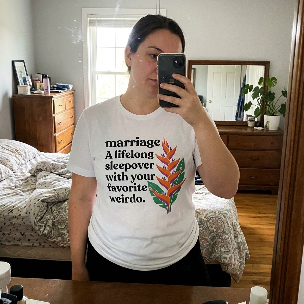Okay, this tee is just great. The 'lifelong sleepover' design totally nails the vibe of marriage in such a clever way, and honestly, the shirt itself is super soft. Definitely a winner, gonna wear this one a lot.