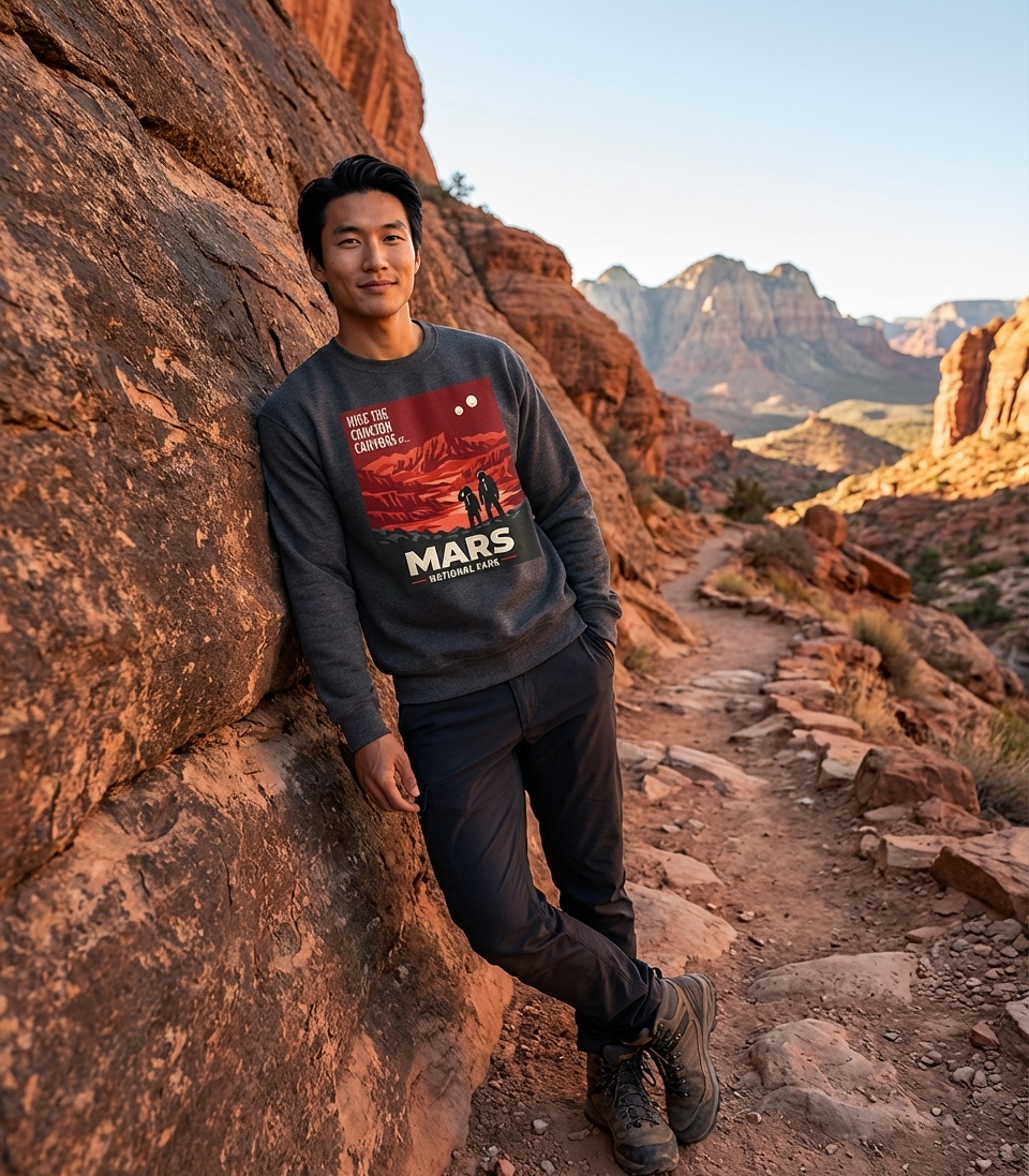 This design captures the lifestyle of adventurous space enthusiasts who dream of exploring alien landscapes, trekking crimson canyons, and witnessing distant moons.