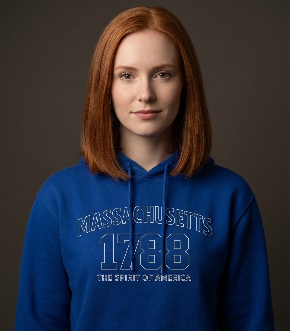 "Massachusetts 1788" signifies the year the Commonwealth ratified the U.S. Constitution, becoming the sixth state in the Union. This date is a cornerstone of American history. "The Spirit of America" ties this significant historical event to the enduring ideals and values that define the nation.