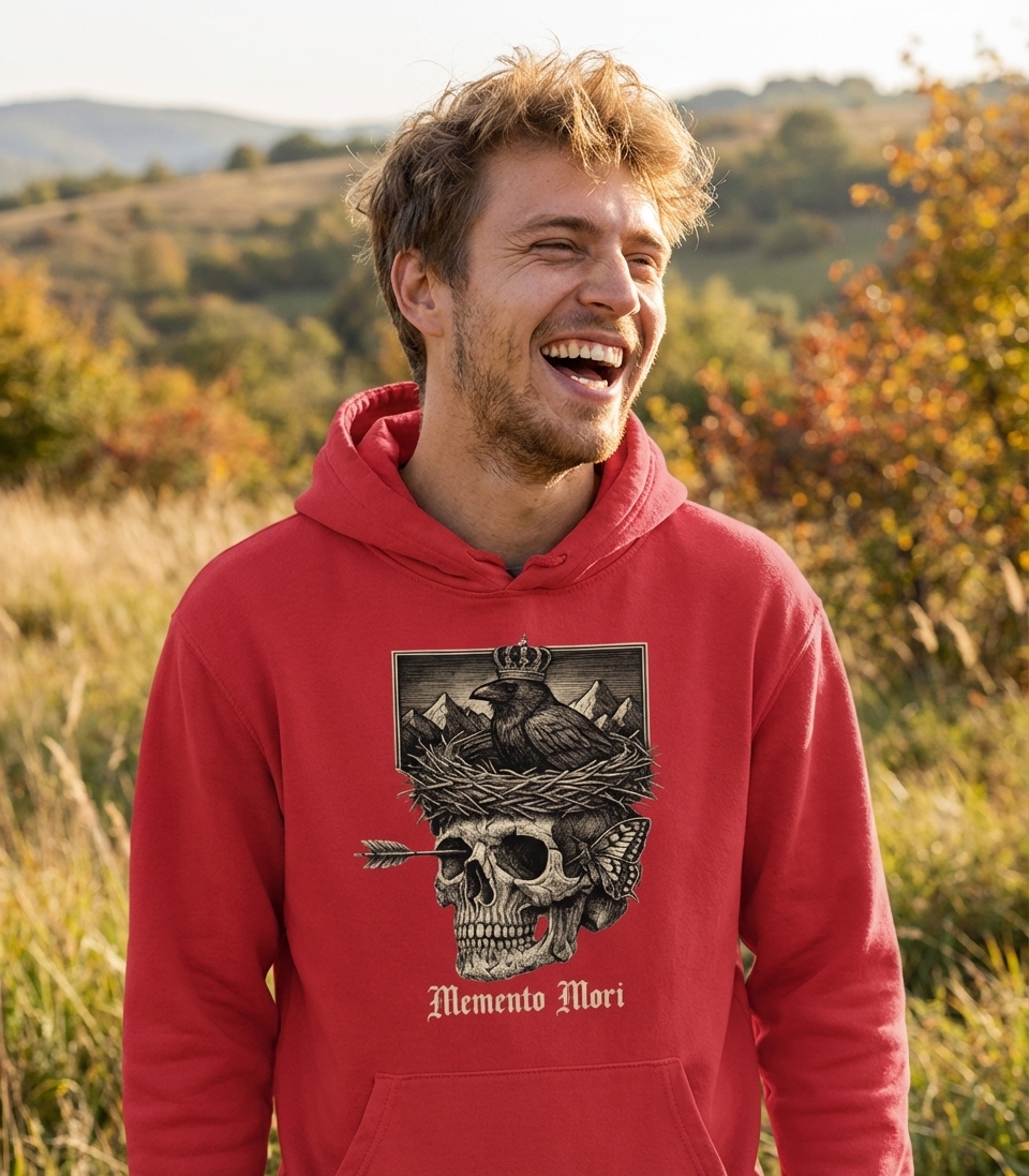 The "Memento Mori" phrase captures the lifestyle of reflective individuals who contemplate life's transience, appreciate dark aesthetics, and seek deeper meaning in existence.