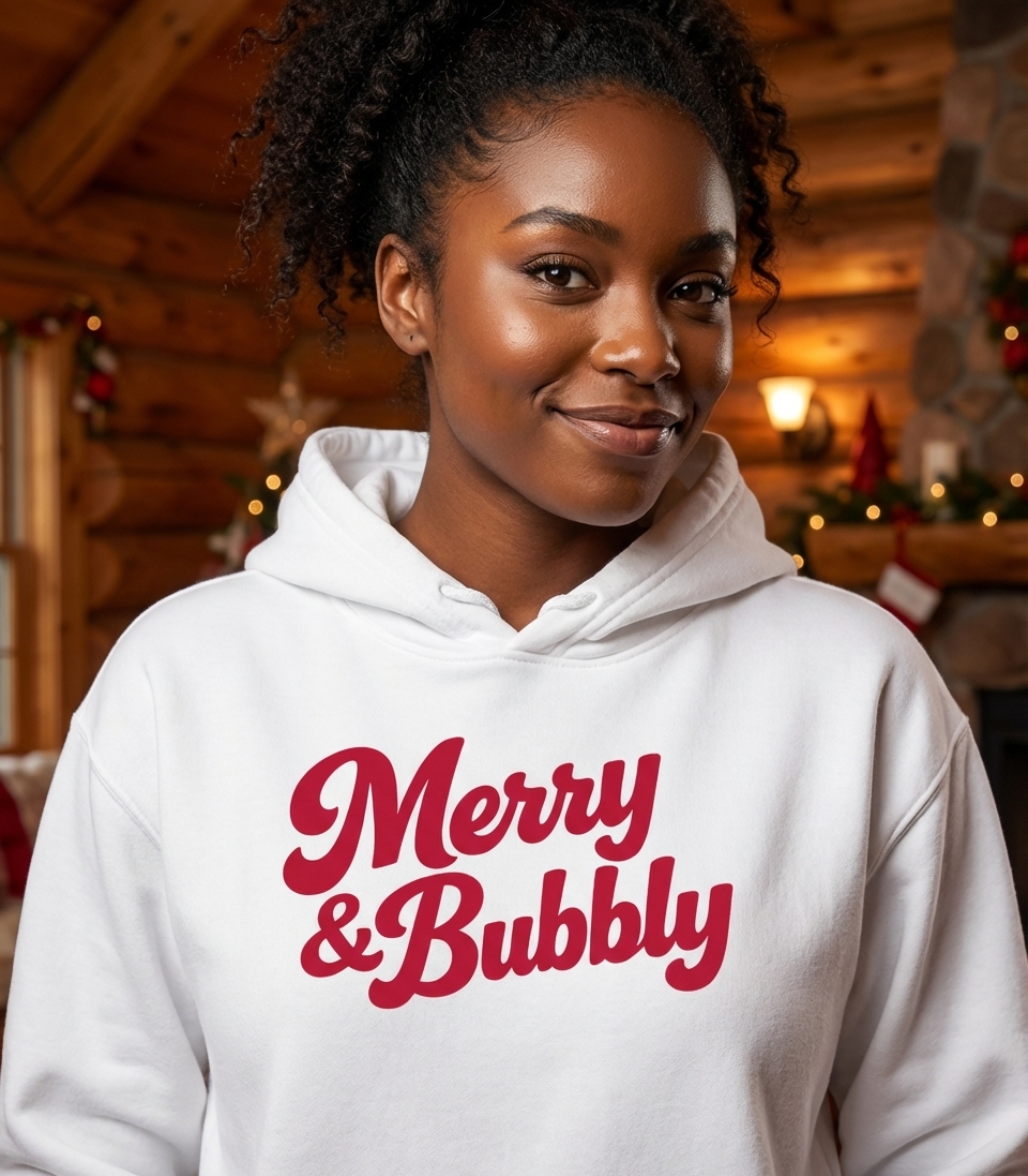 The "Merry & Bubbly" phrase captures the lifestyle of festive individuals who enjoy holiday cheer, sparkling celebrations, and joyful gatherings.