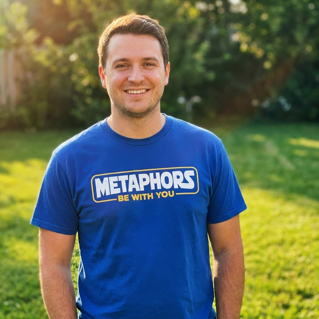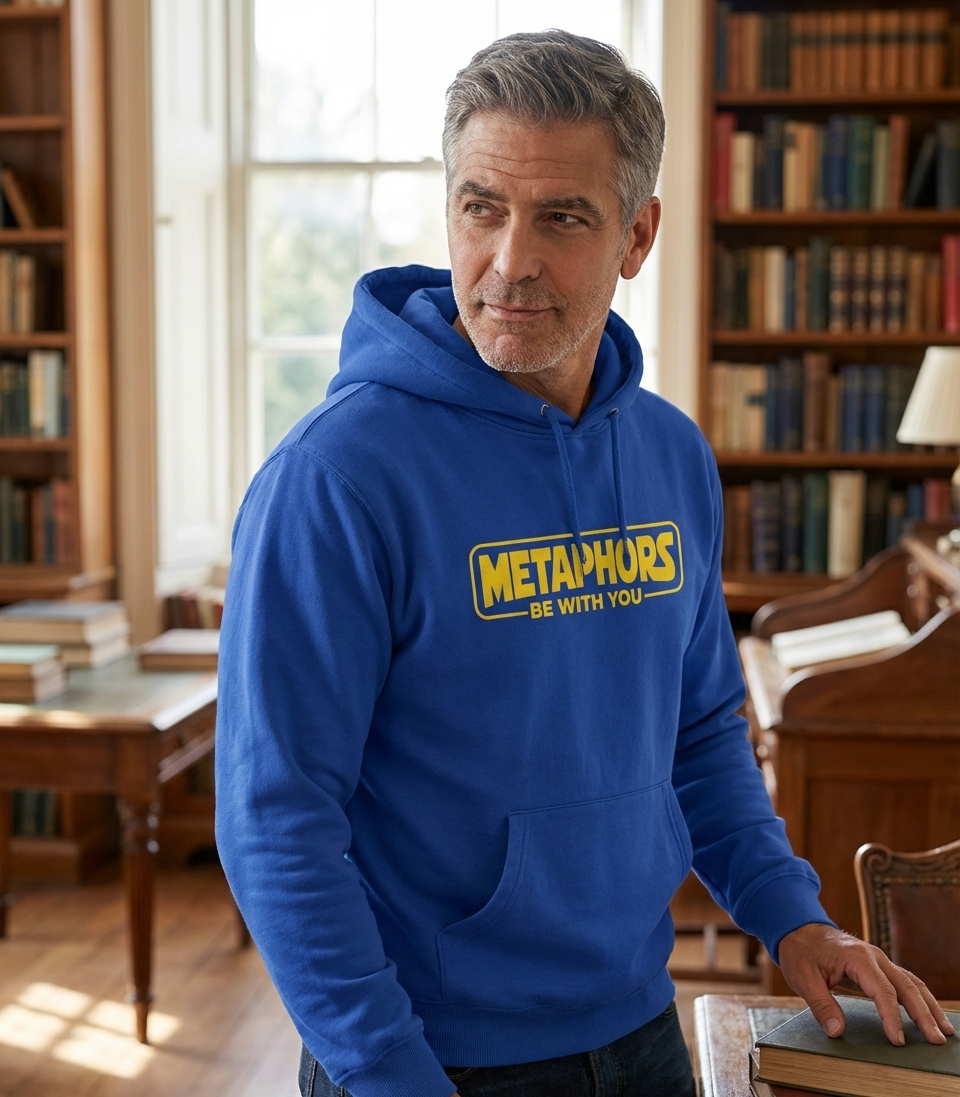 The phrase "Metaphors Be With You" is a witty alteration of a famous line from a beloved space opera. It signifies an appreciation for figurative language, clever wordplay, and an understanding of literary devices, all presented with a humorous, pop culture nod.