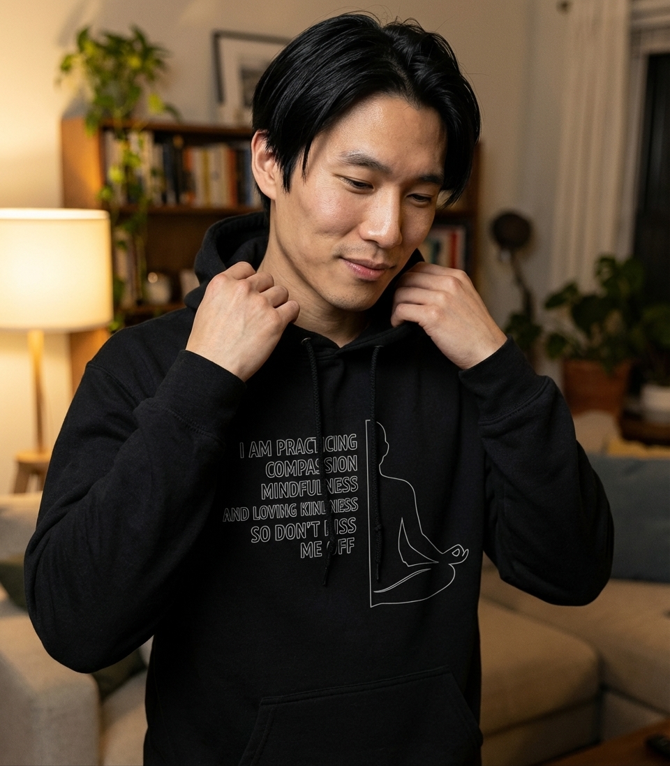 The 'Mindfulness Humor' design captures the lifestyle of those who seek inner peace through meditation and yoga, but also appreciate a good sarcastic laugh.