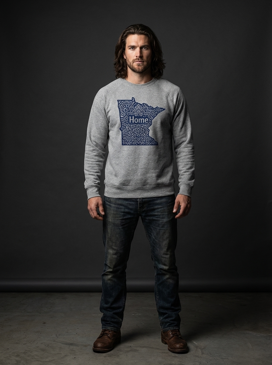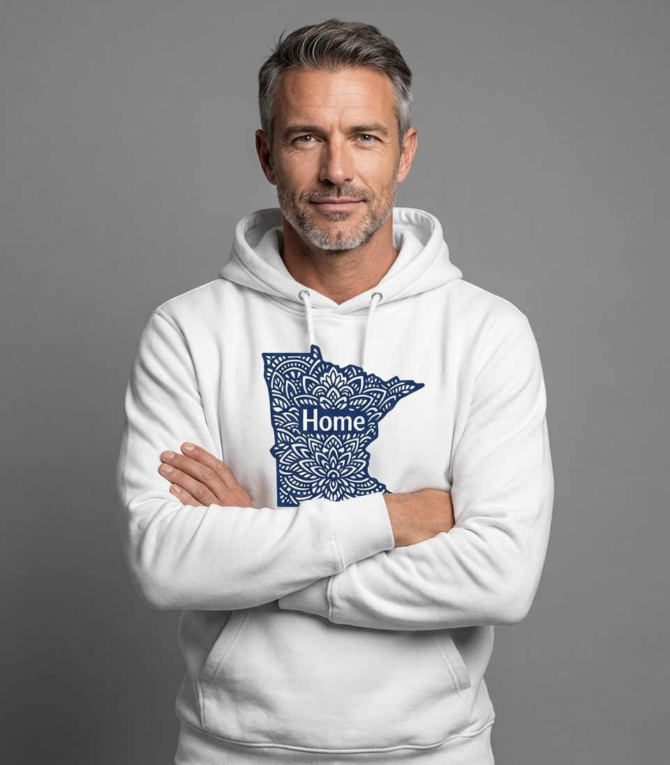 The 'Home' phrase captures the lifestyle of passionate Minnesotans who cherish their roots, celebrate their state, and carry its spirit wherever they go.