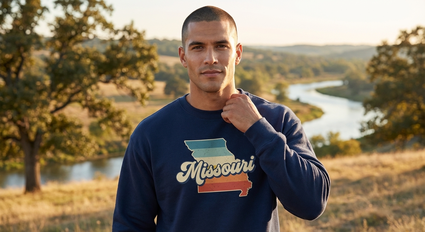 The core phrase "Missouri" represents the proud identity of the state and its people. This design taps into a sense of hometown pride, celebrating the heritage and beauty of Missouri.