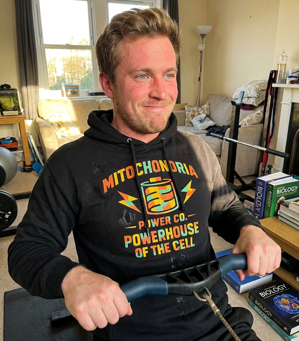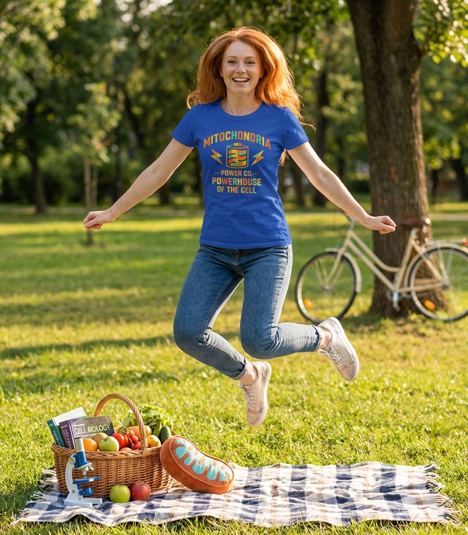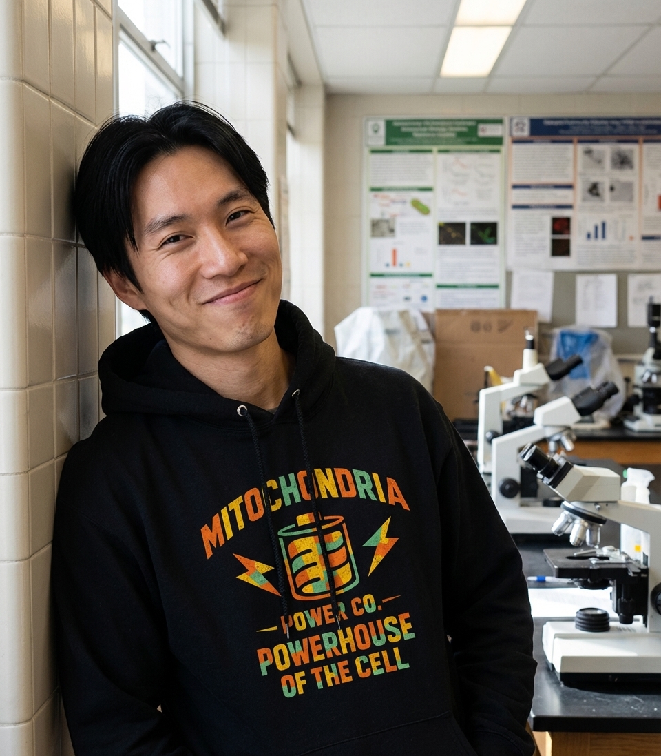 The 'Mitochondria Powerhouse Cell' phrase captures the lifestyle of passionate science enthusiasts who spend their days learning, discovering, and sharing biological wonders.