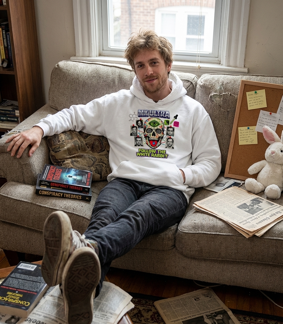 This design captures the journey of truth-seekers who delve into government secrets, historical mysteries, and counter-culture phenomena.