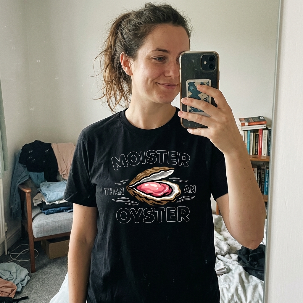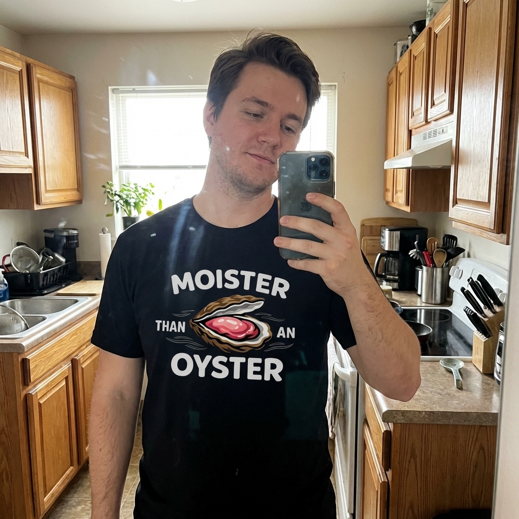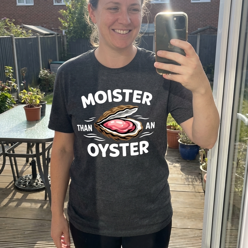 Okay, this tee is actually super soft, really dig the fabric. The 'Moister Than An Oyster' design is kinda hilarious, totally my vibe for a chill day. Seriously, just get it, you won't regret it.