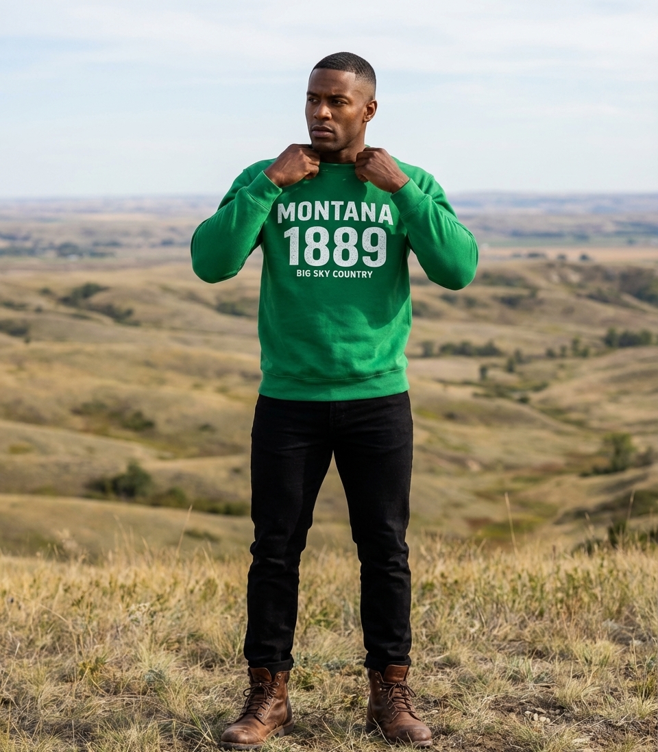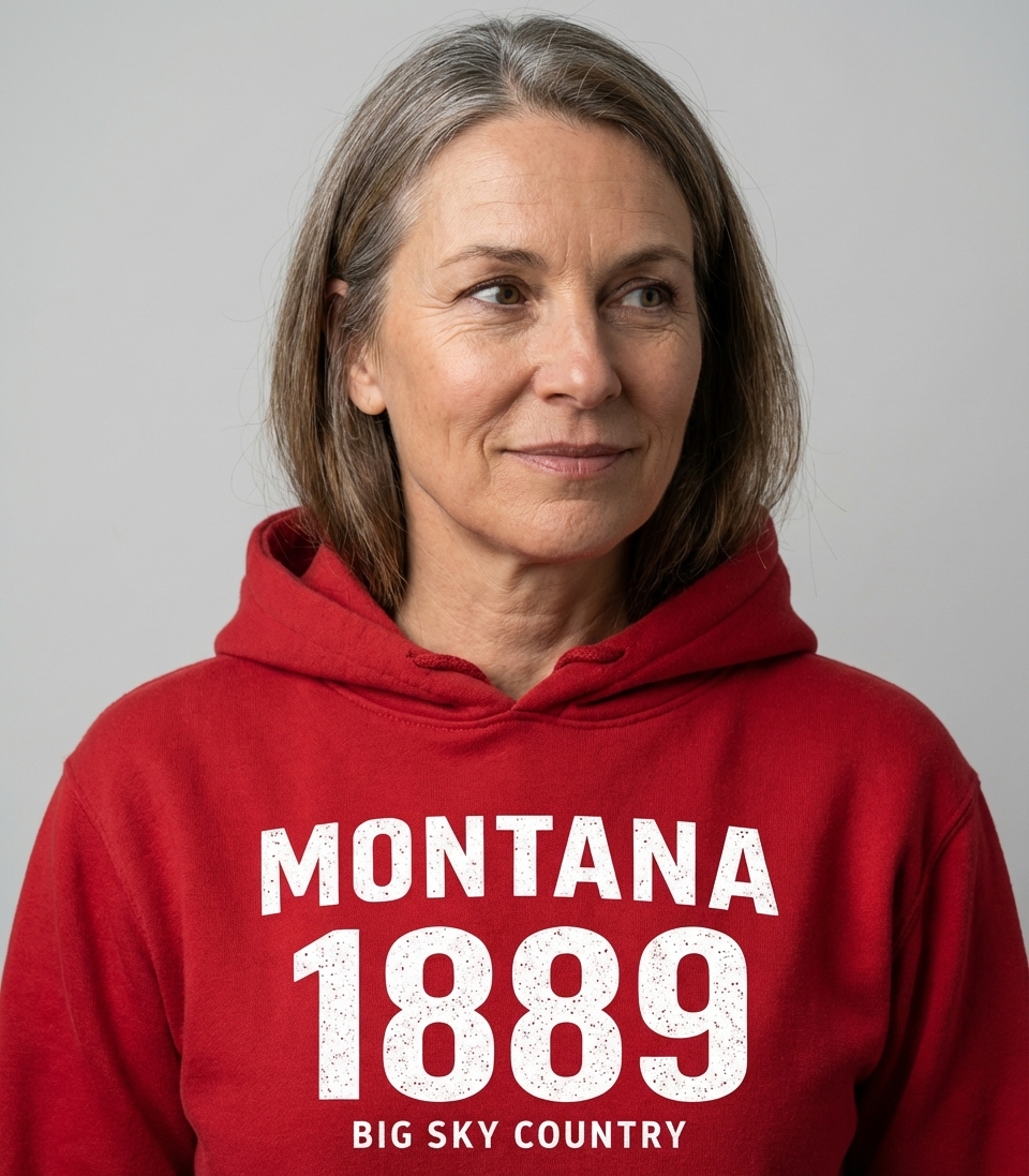 The "Montana 1889 Big Sky Country" design captures the lifestyle of proud Montanans who celebrate their rich history, stunning landscapes, and fierce state spirit.
