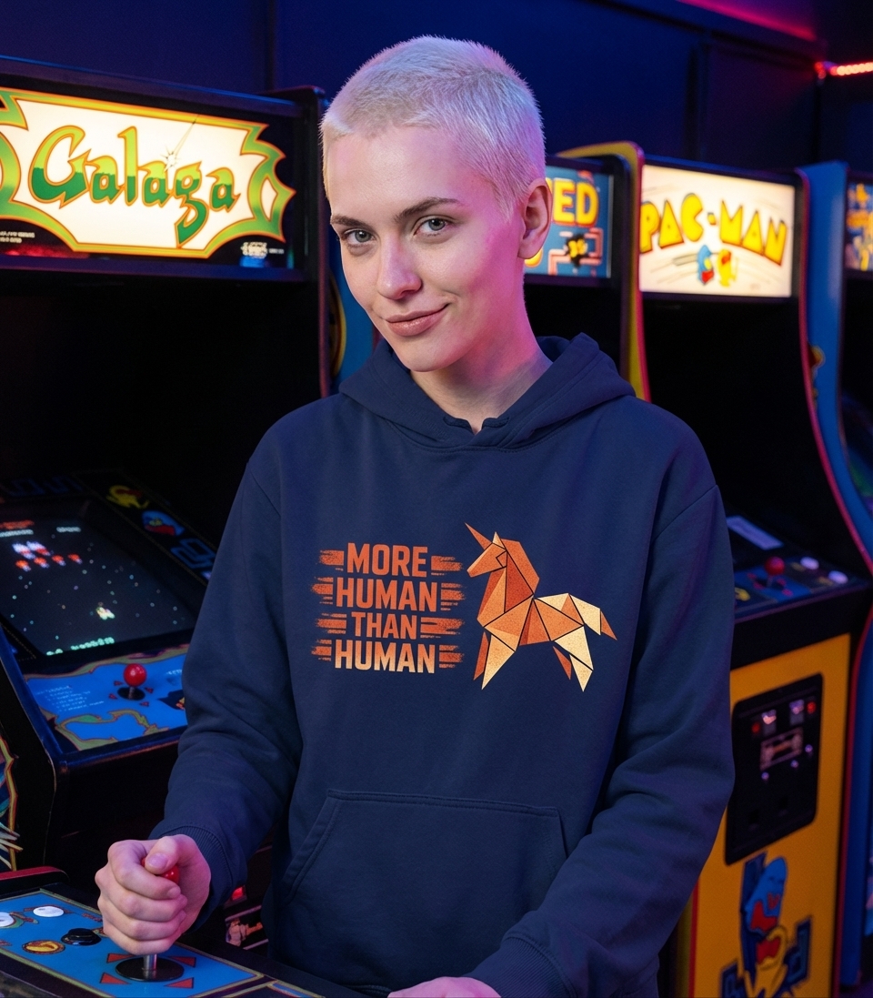 The "More Human Than Human" phrase captures the deep philosophical themes appreciated by passionate sci-fi enthusiasts who explore futuristic worlds, complex AI, and dystopian narratives.
