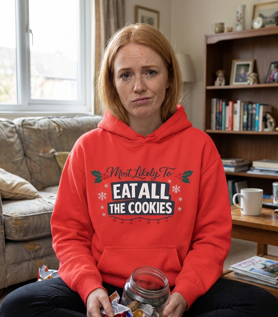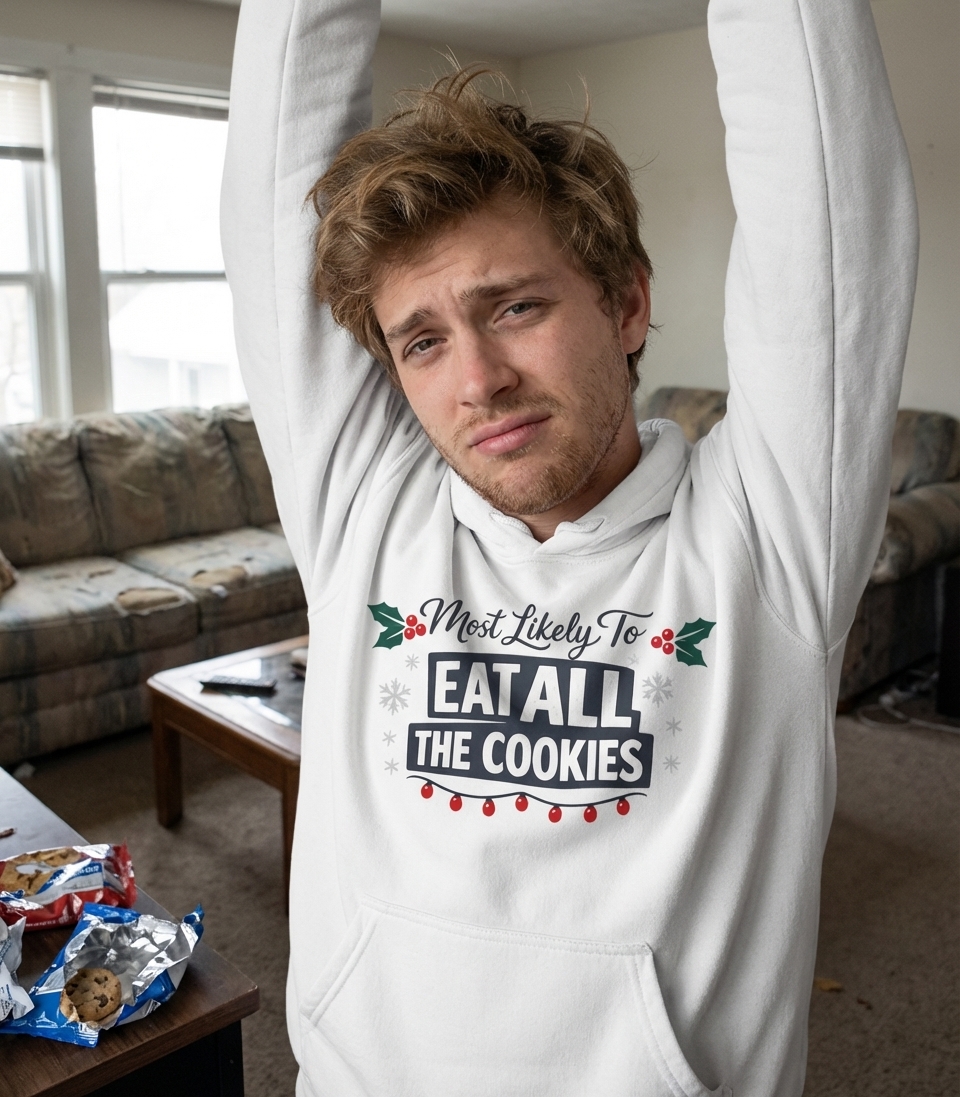 The "Most Likely To Eat All The Cookies" phrase captures the fun, relatable enthusiasm of individuals who fully embrace holiday indulgence and festive snacking.