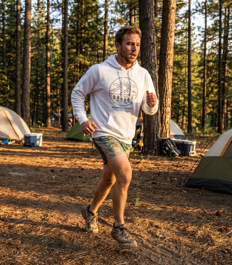 The text "General Apparel" accompanying the graphic suggests the versatile and everyday nature of the clothing. It implies this design is for a broad audience who appreciate classic, comfortable wear with an outdoor theme.