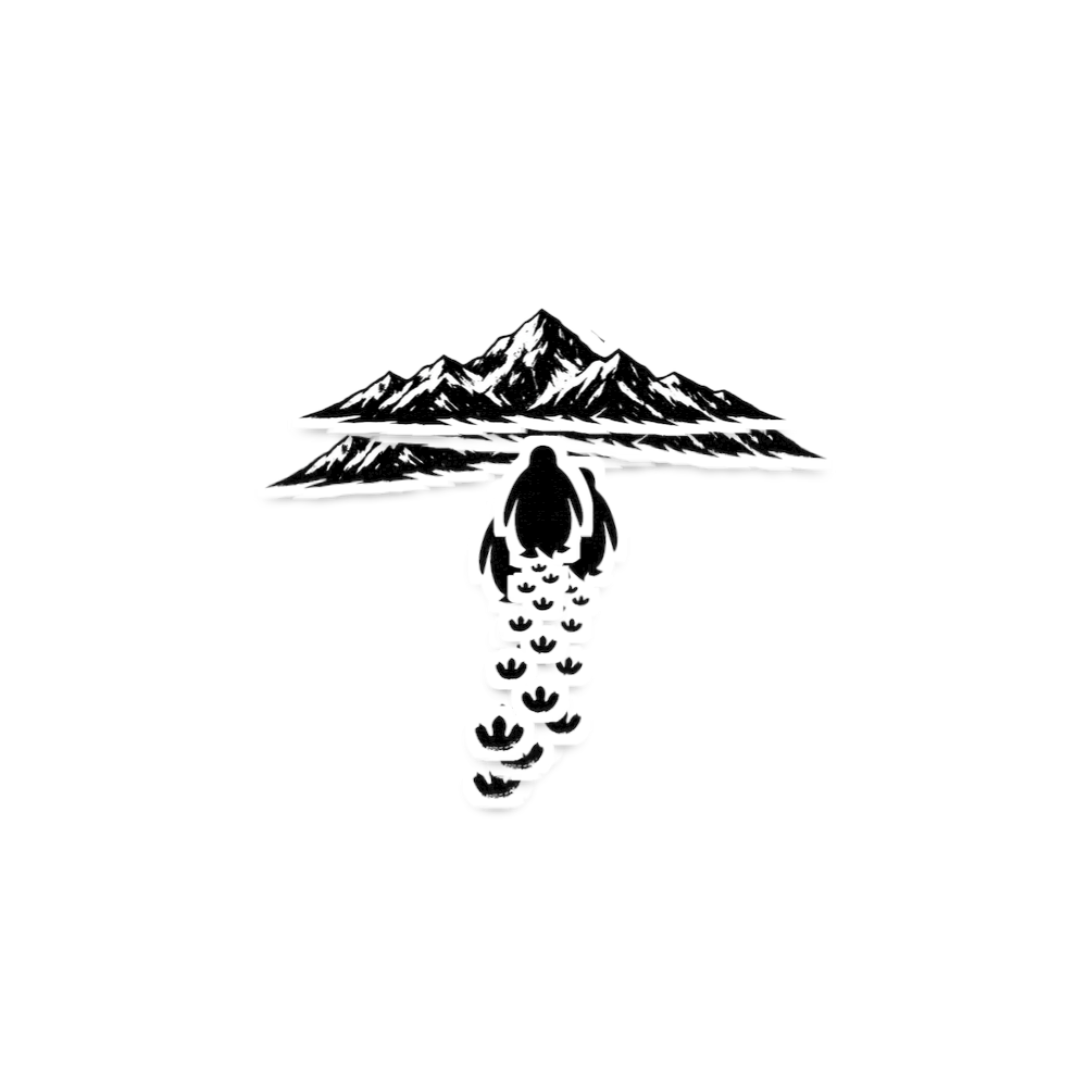 This minimalist graphic features a bold mountain range in a striking black and white silhouette. The design captures the rugged beauty and grandeur of nature's peaks.