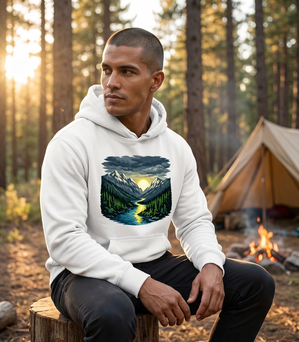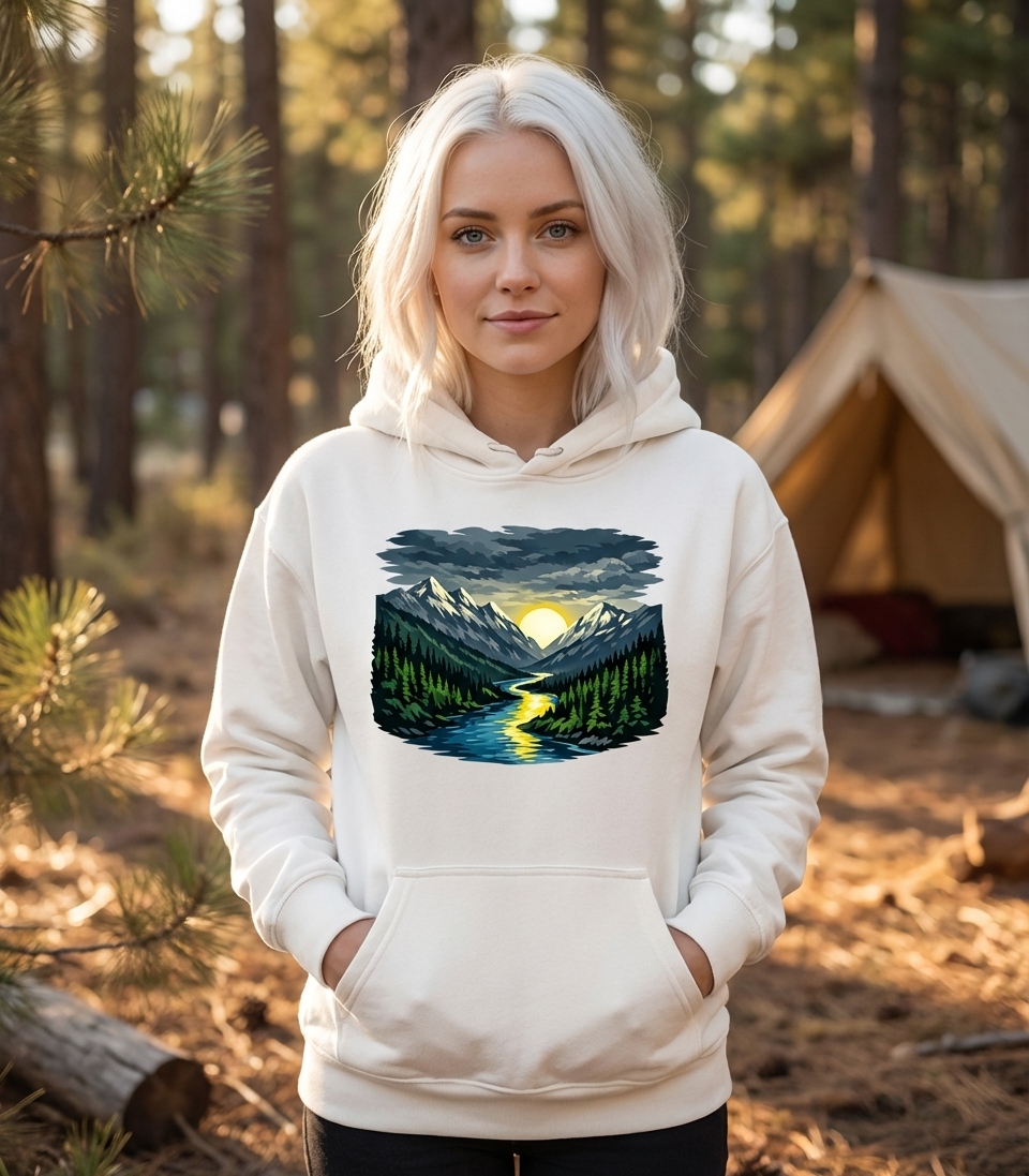 Yes! Check the style selector above to see all available options including hoodies and sweatshirts for the Mountain River Sunset graphic.