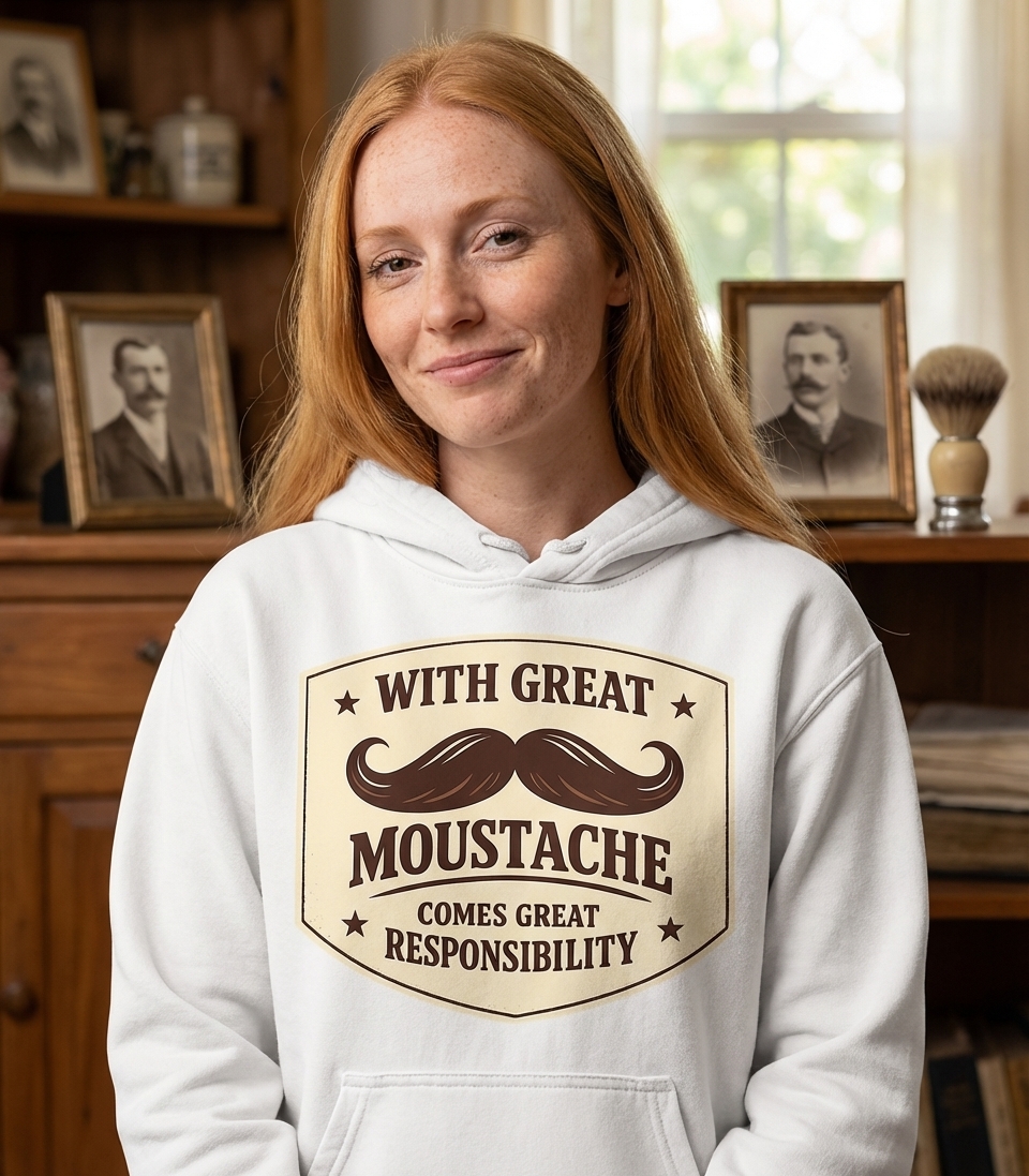 The "With Great Moustache Comes Great Responsibility" phrase captures the lifestyle of those who meticulously style their facial hair, appreciate witty humor, and embrace their unique identity.