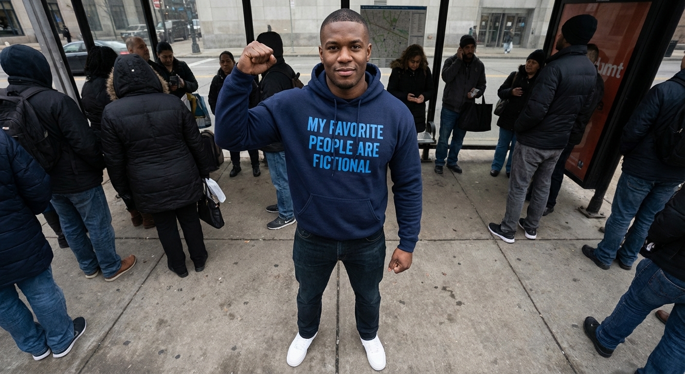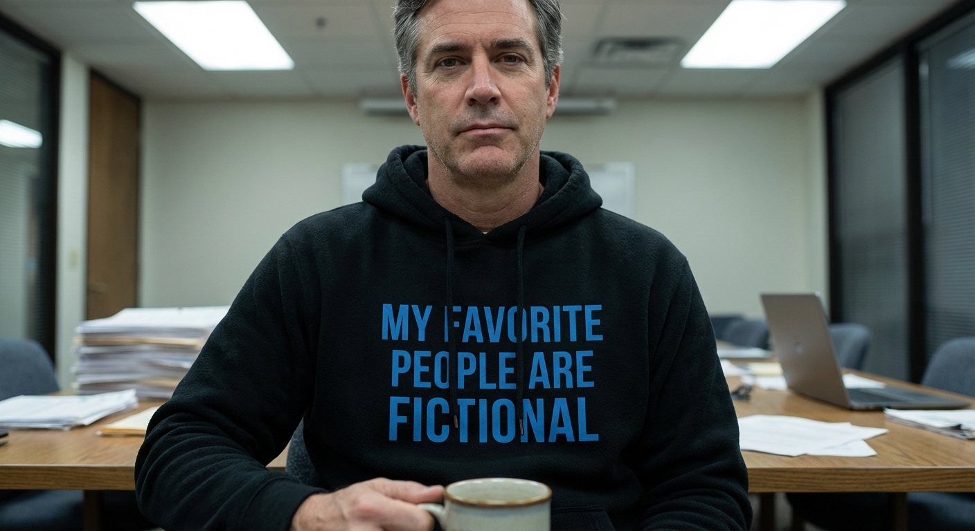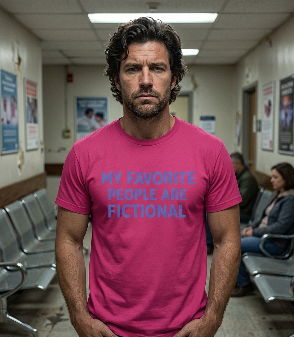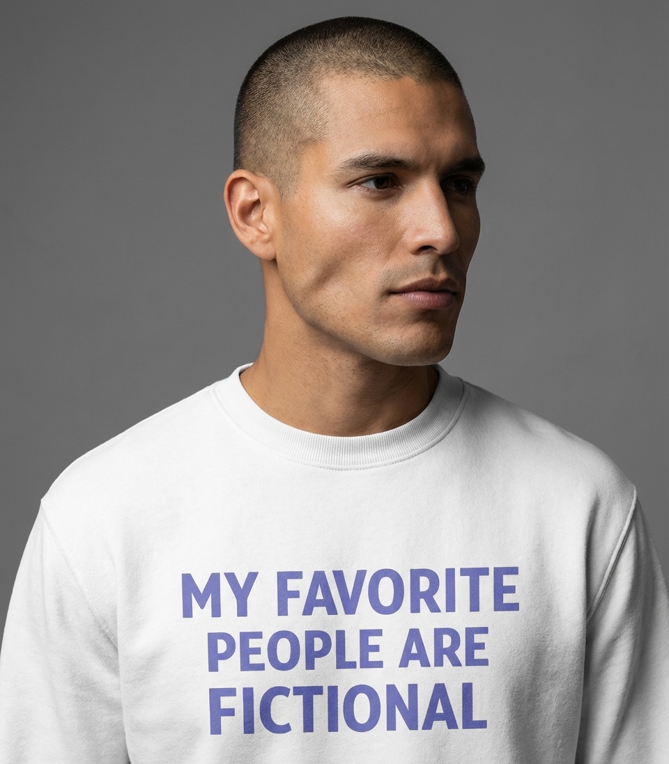This design features a bold, straightforward declaration for anyone who finds more comfort and excitement in fictional worlds. It's a clear statement celebrating the rich narratives and compelling characters found in books, films, and games.