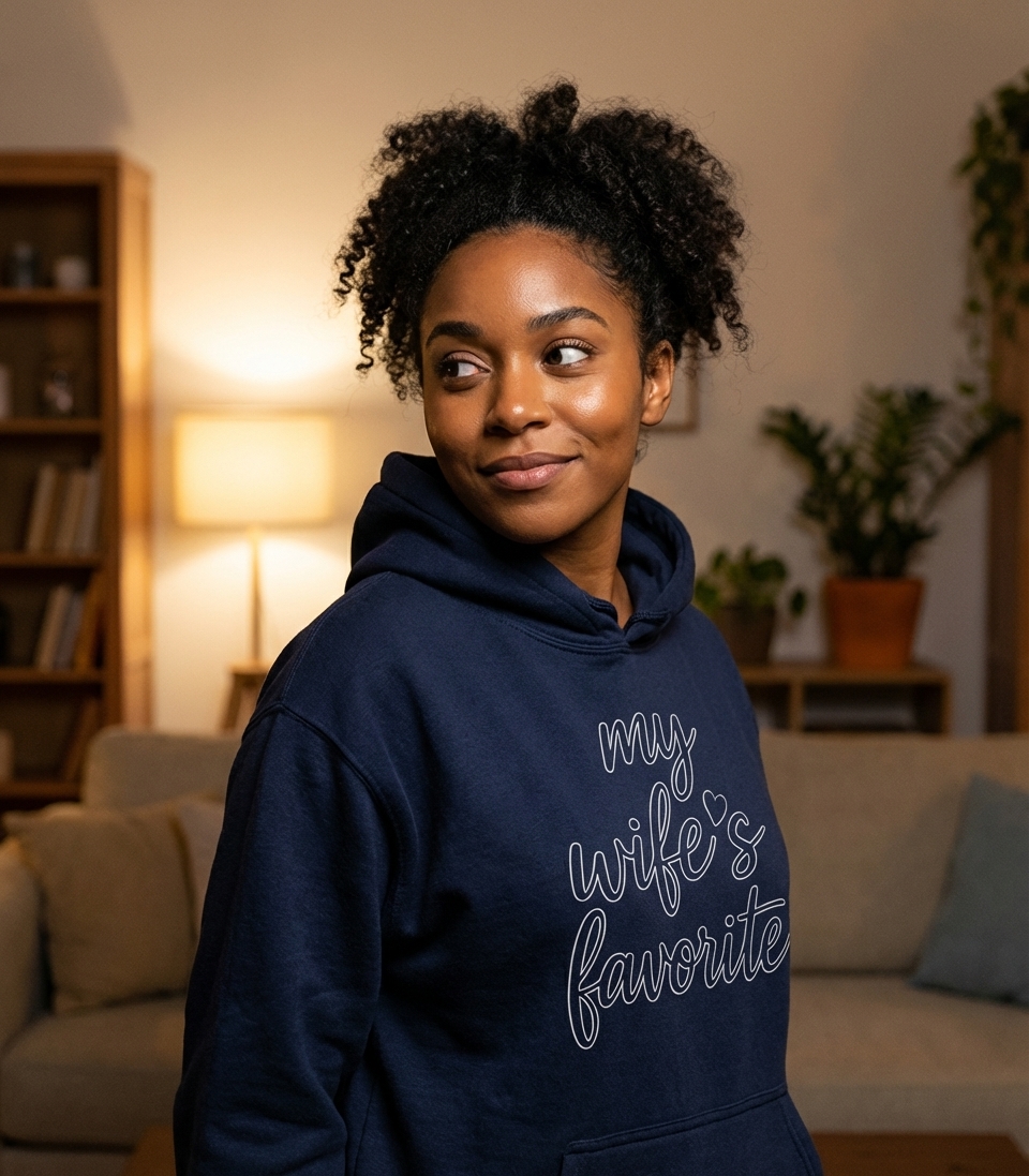The "My Wife's Favorite" phrase captures the loving sentiment of proud partners who want to show off their cherished status to the world.