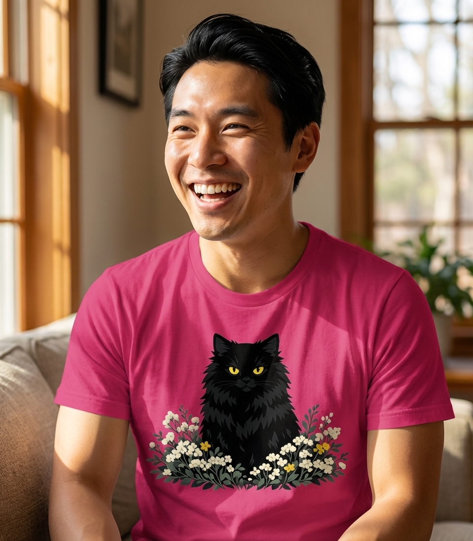 - feline and flower shirt