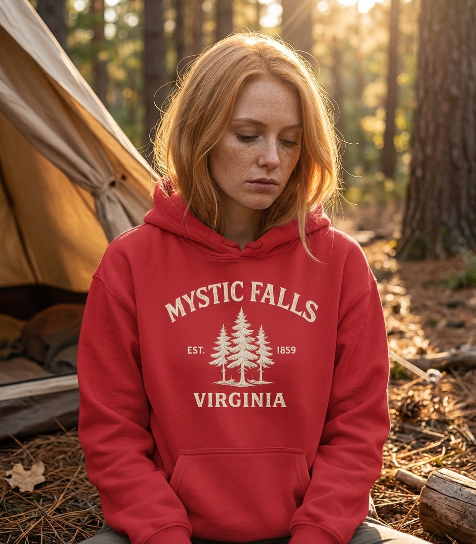 Yes! Check the style selector above to see all available options including hoodies and sweatshirts for the Mystic Falls Virginia graphic.