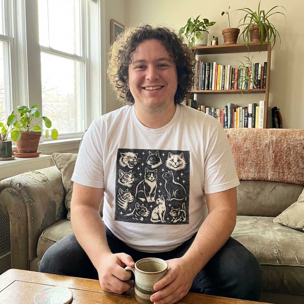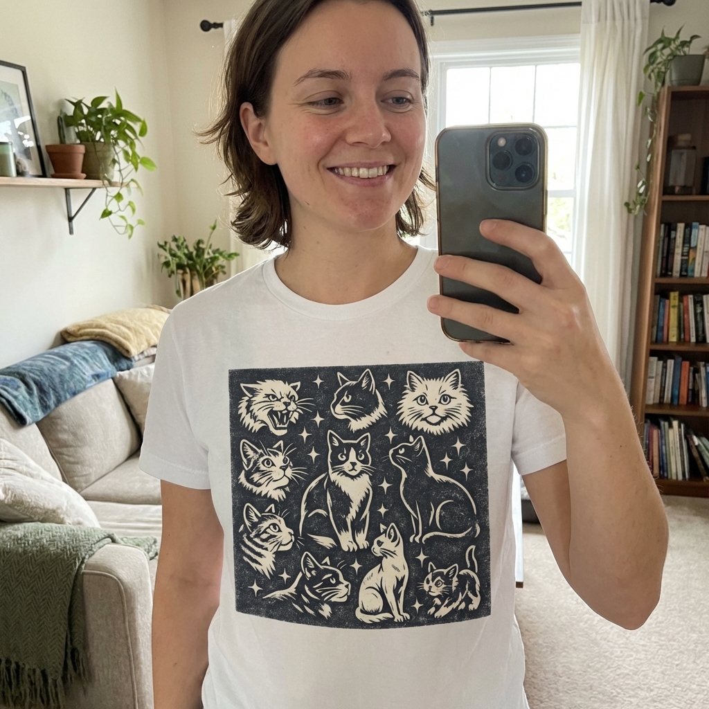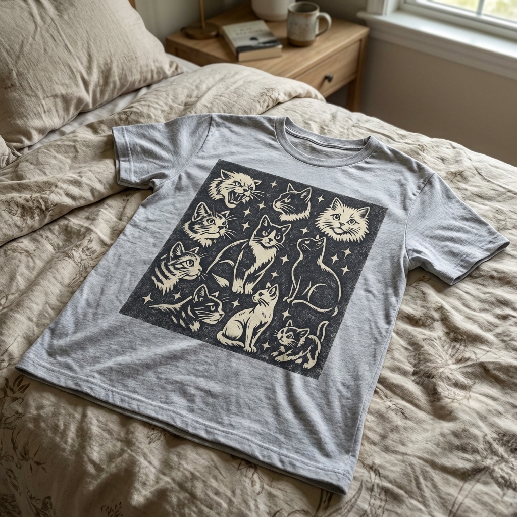 Okay, so this 'Mystical Cats' tee is super comfy, like, surprisingly soft. The abstract design is just really cool and unique, perfect for everyday wear. totally love it, definitely recommend.