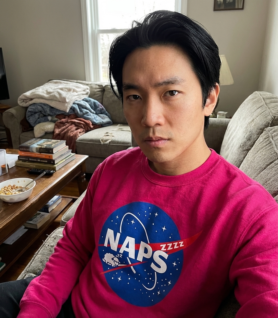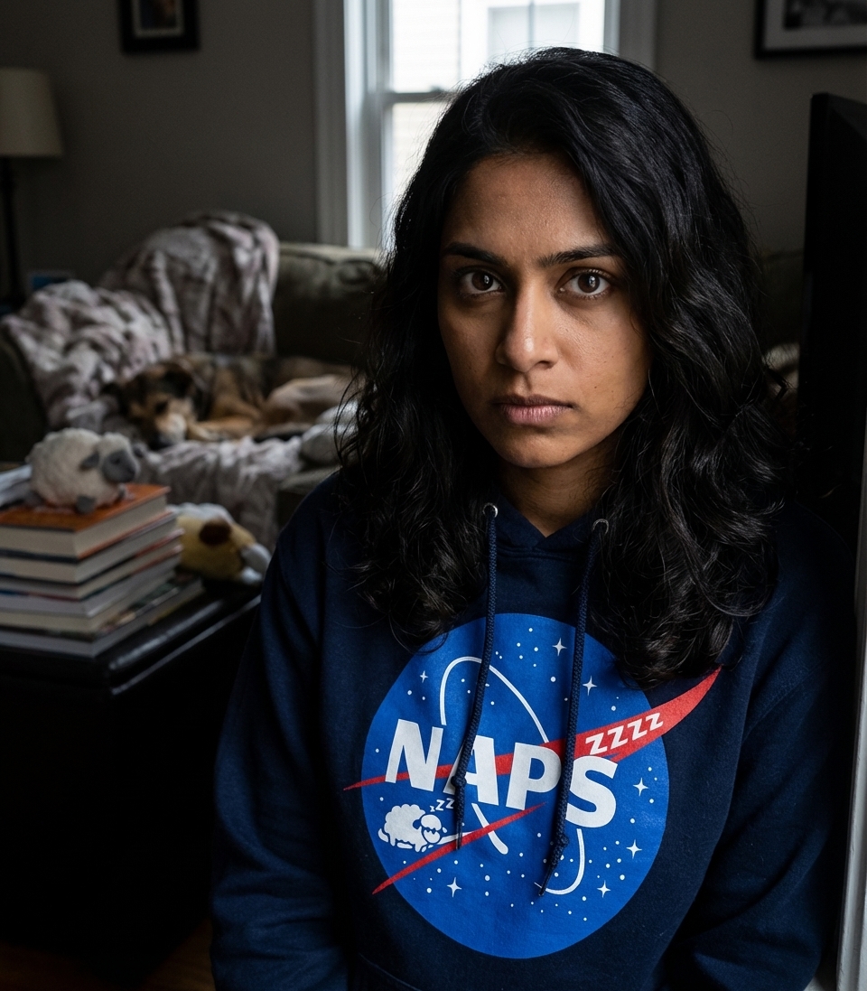 This clever artwork transforms the iconic NASA 'meatball' logo into a witty tribute to napping. It cleverly replaces the agency's name with 'NAPS' and incorporates sleepy elements like 'zzzz' and a relaxed sheep wearing sunglasses, all set against a cosmic backdrop.