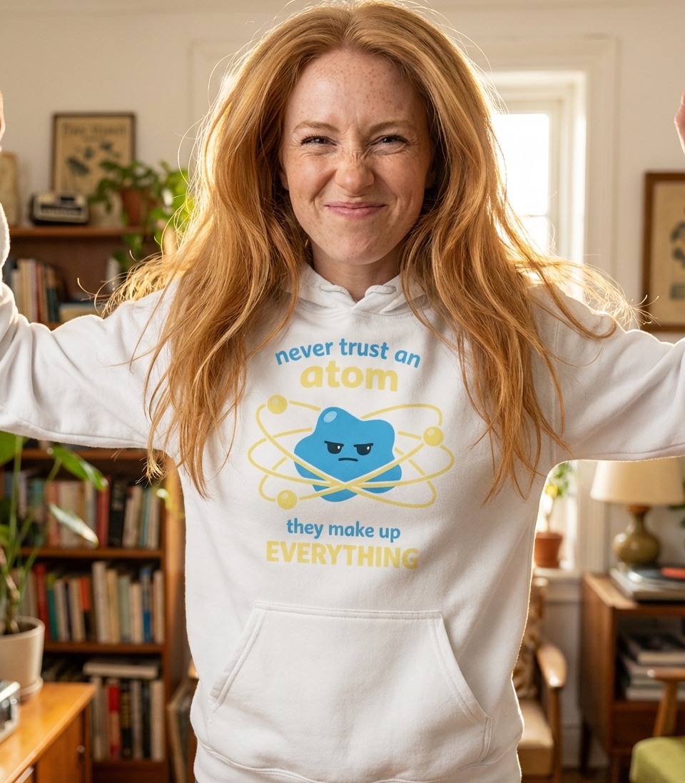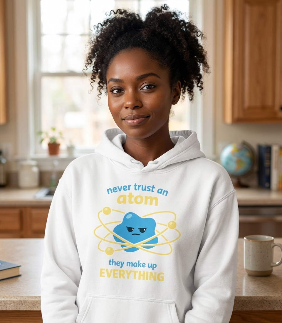 Yes! Check the style selector above to see all available options including hoodies and sweatshirts for the Never Trust Atom Pun graphic.