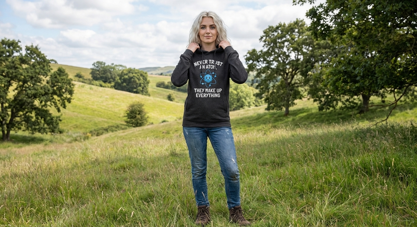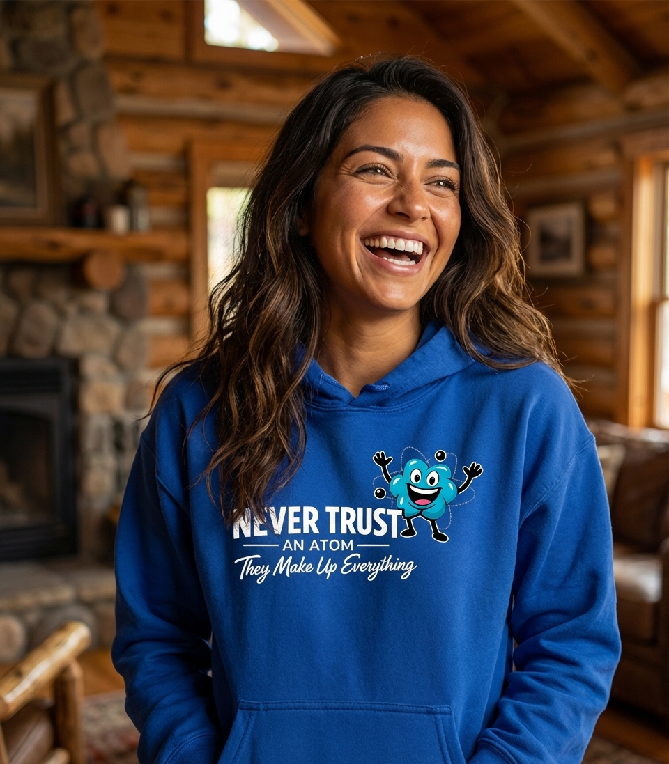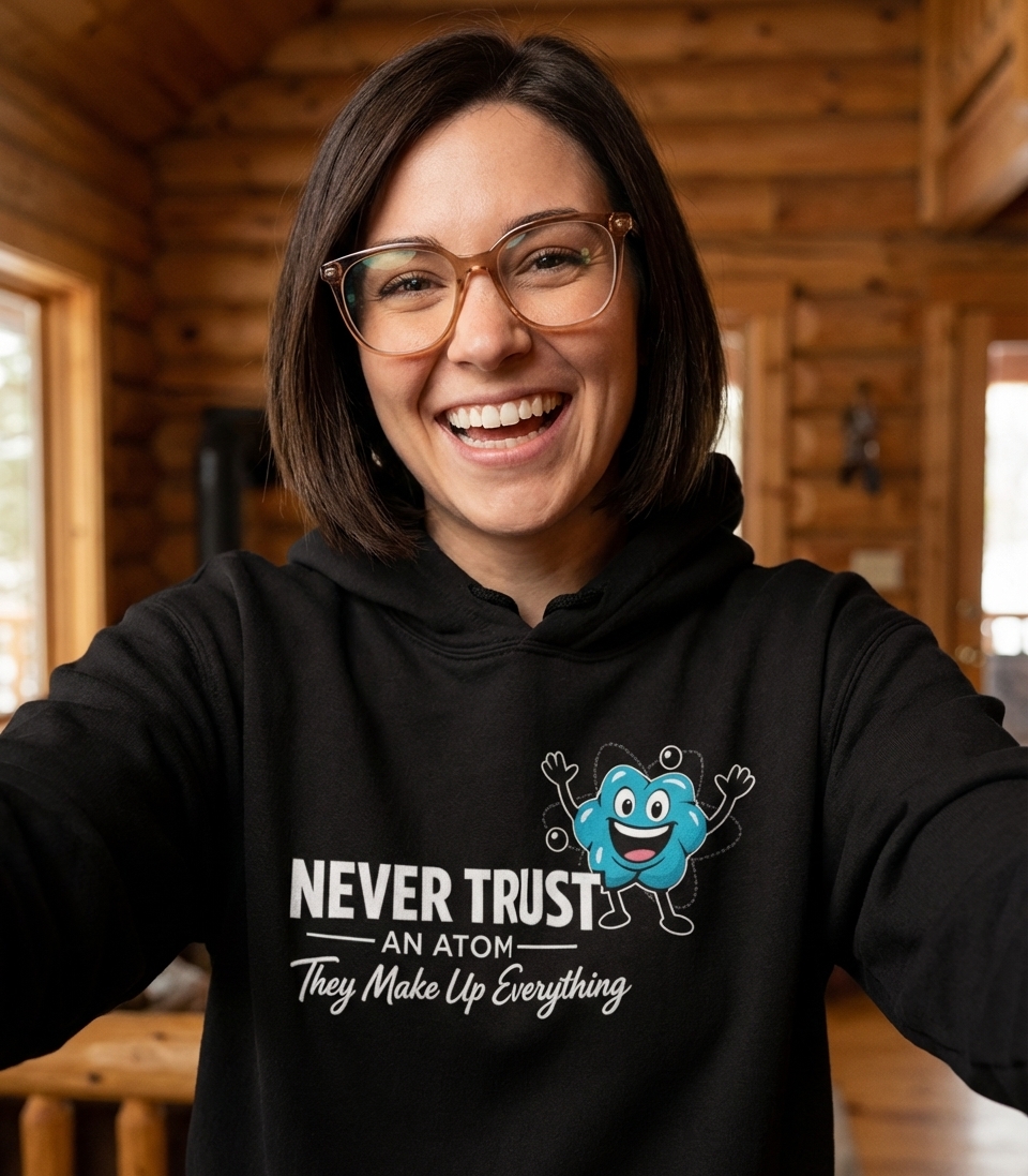 The "Never Trust An Atom" phrase captures the lifestyle of science enthusiasts who appreciate clever puns, enjoy a good laugh, and embrace their nerdy side.
