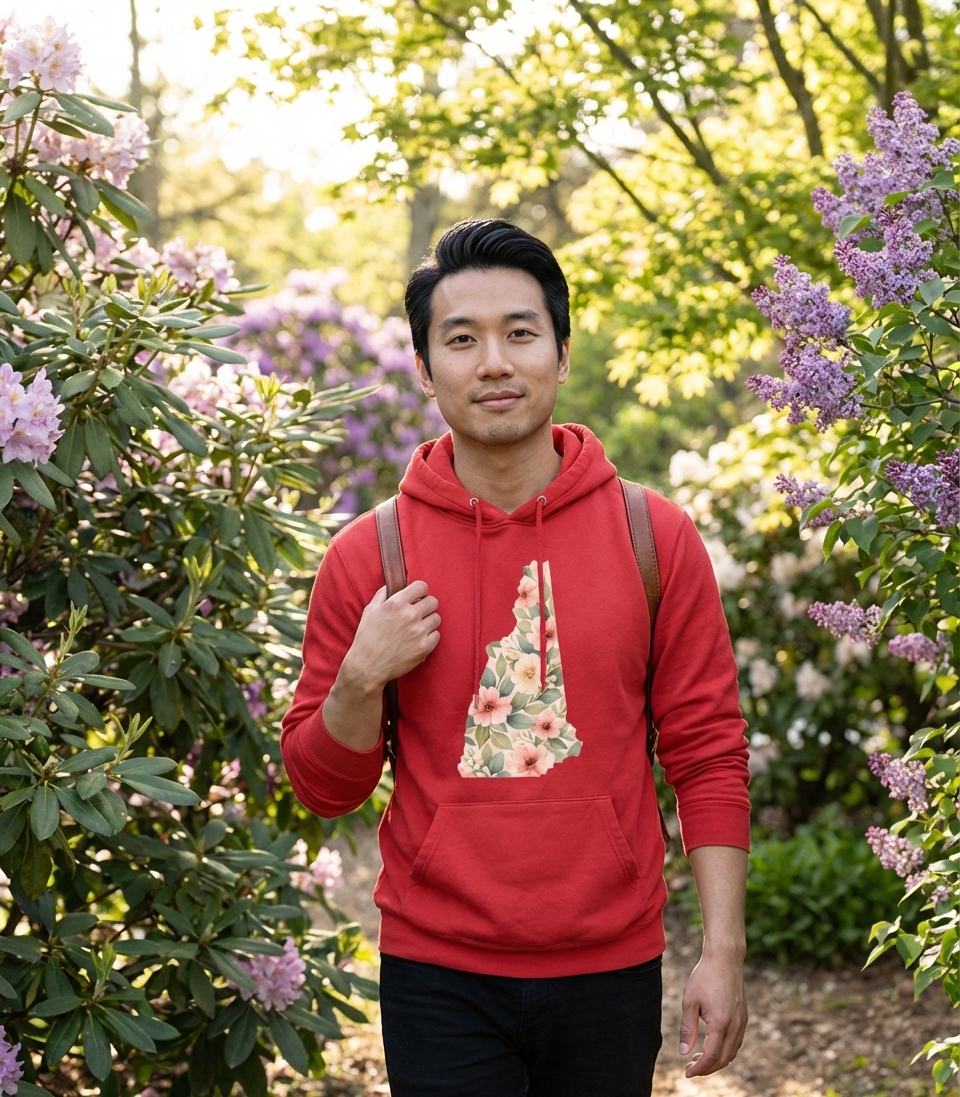 The New Hampshire Floral design captures the appreciation for natural beauty and state pride of residents and visitors who love the Granite State's landscapes, vibrant flowers, and charming small towns.