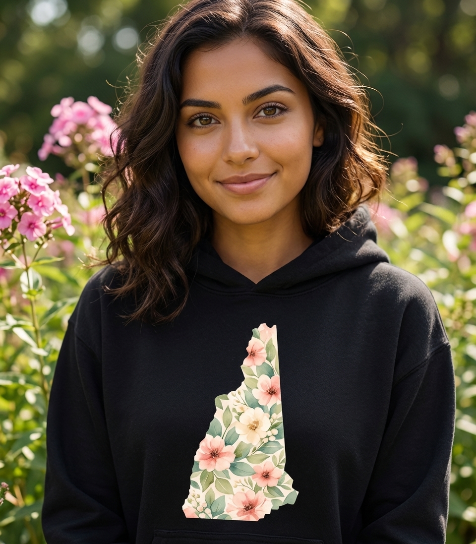 Yes! Check the style selector above to see all available options including hoodies and sweatshirts for the New Hampshire Floral State graphic.
