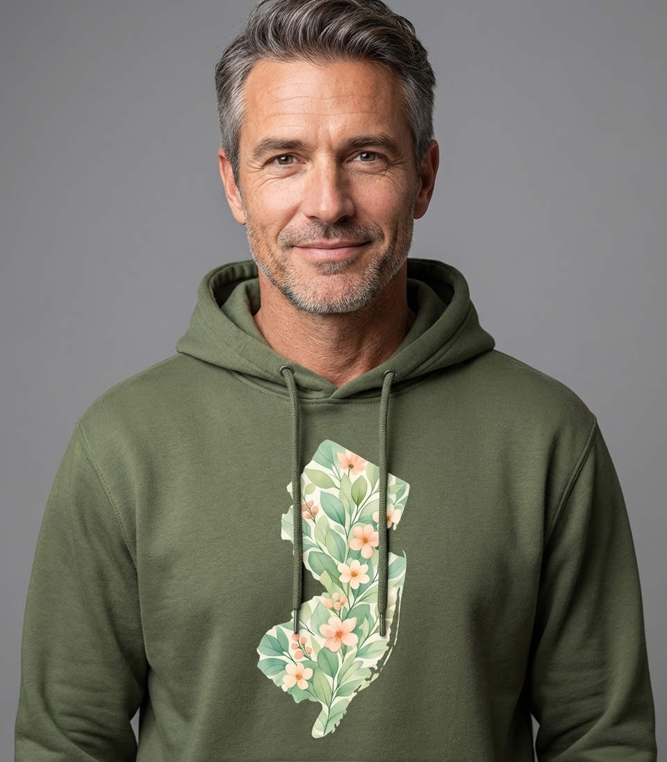 This blooming New Jersey design captures the pride of residents who cherish their state's natural beauty, vibrant communities, and unique coastal charm.