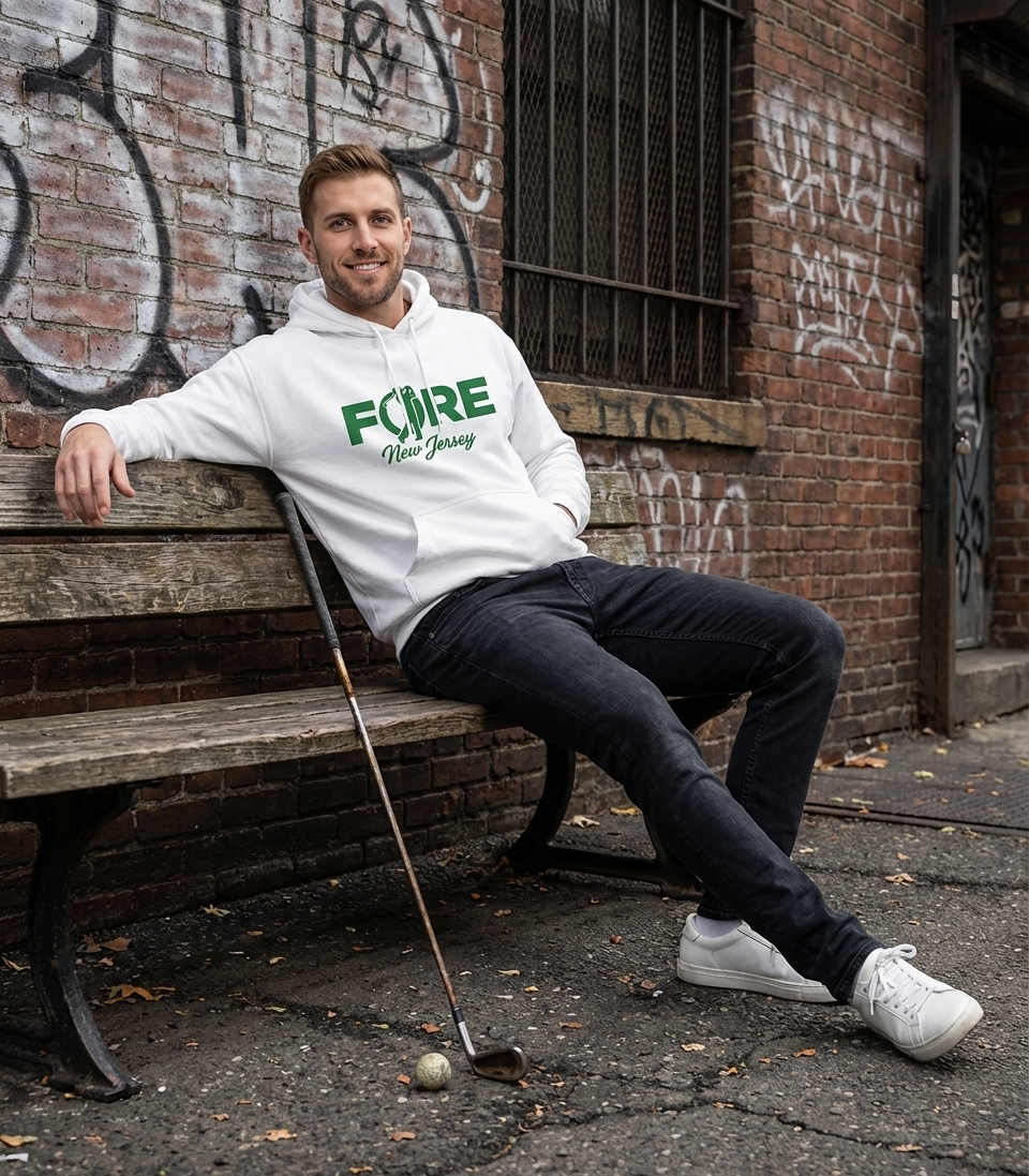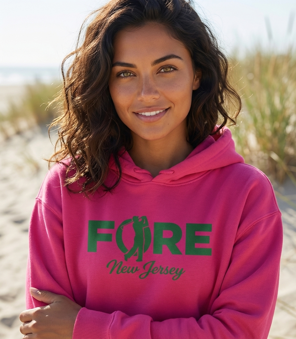 The 'FORE New Jersey' design captures the lifestyle of passionate golfers who love hitting the links and representing their home state.