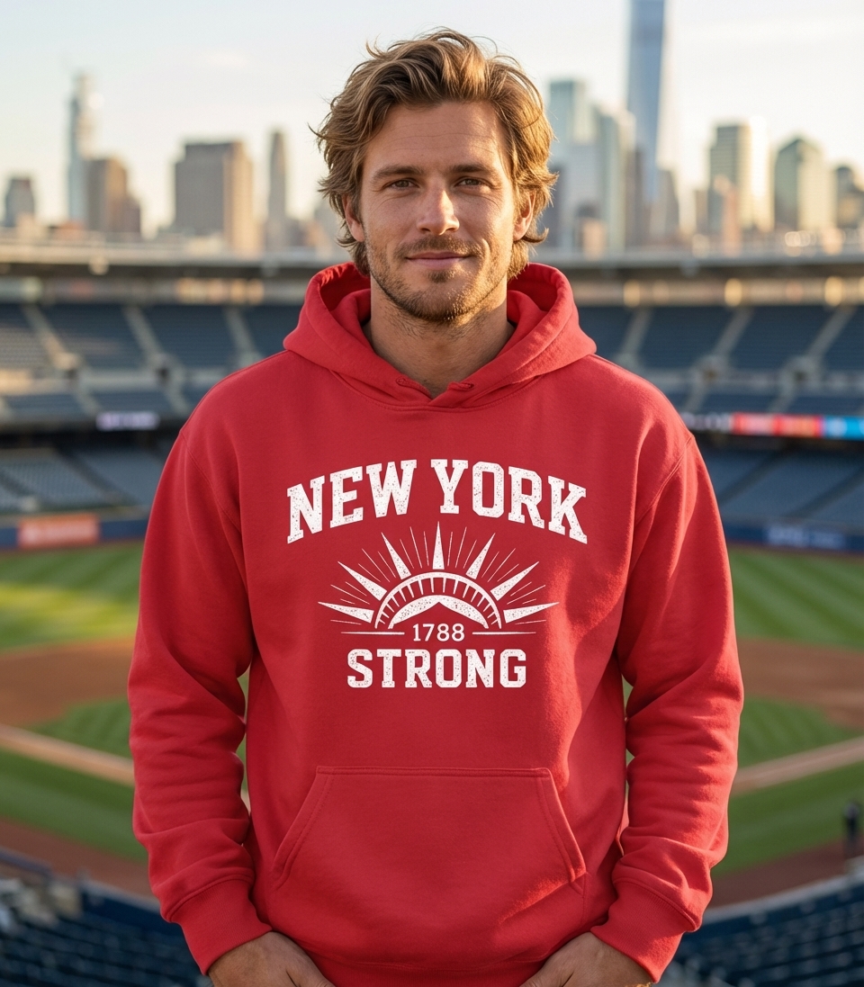Yes! Check the style selector above to see all available options including hoodies and sweatshirts for the New York 1788 Strong graphic.