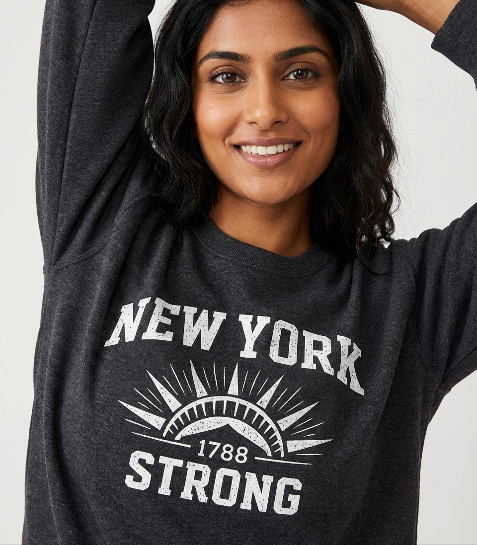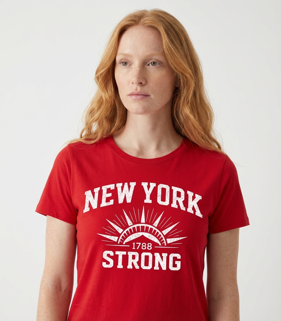 This design proudly features "New York 1788 Strong" in a vintage-inspired, distressed font. The central sunburst graphic symbolizes strength and the rising spirit of the Empire State, reflecting a deep sense of historical pride.