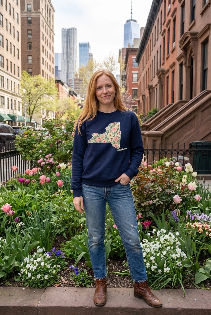 This charming design captures the spirit of New York with an elegant floral pattern, perfect for those who love the Empire State's unique beauty.