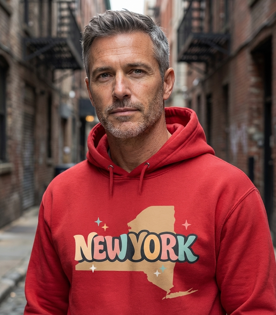 This colorful 'New York' design captures the vibrant spirit of individuals who celebrate their state, embrace retro culture, and love to explore the Empire State.