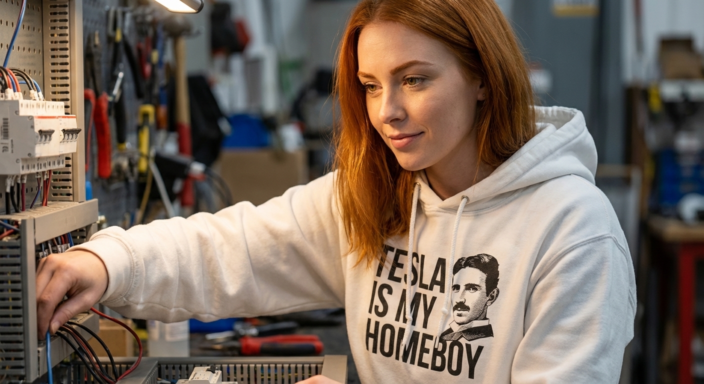The design represents Nikola Tesla, the pioneering inventor and electrical engineer whose work revolutionized the understanding and application of alternating current. It symbolizes his profound impact on modern technology and electricity.