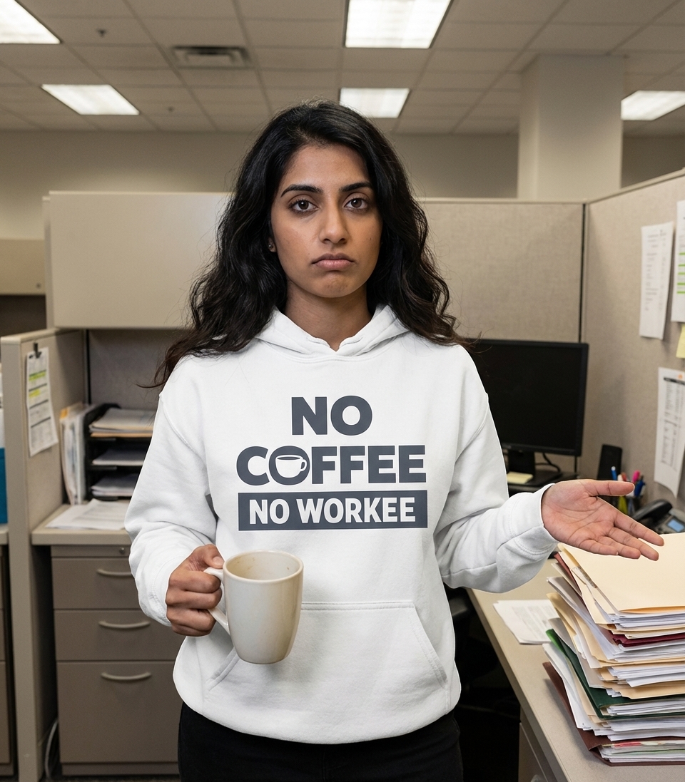 The "No Coffee No Workee" phrase captures the lifestyle of dedicated individuals who need their daily caffeine fix to conquer tasks, stay focused, and tackle the workday.