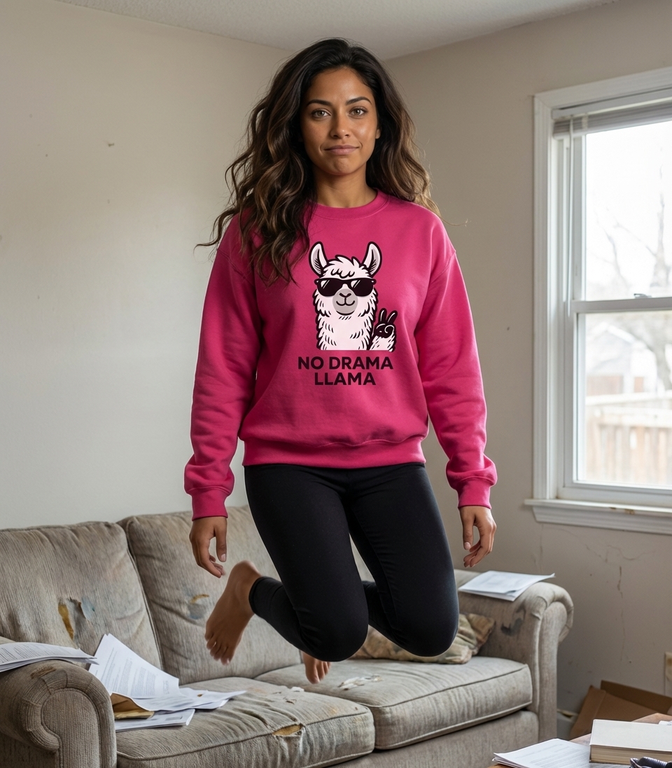 The "No Drama Llama" phrase captures the lifestyle of relaxed individuals who prefer peace, quiet, and positive vibes.
