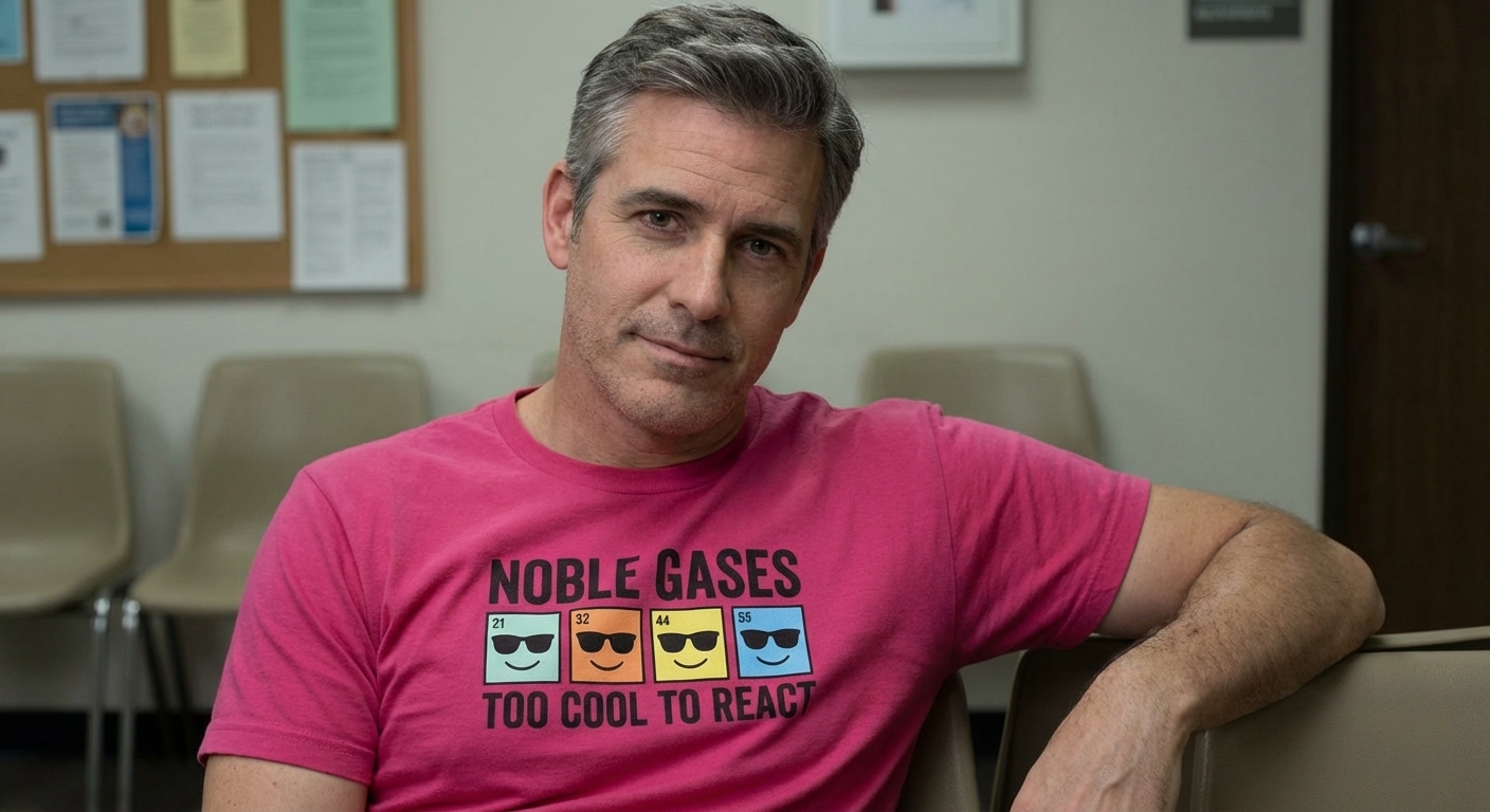 The "Noble Gases" phrase captures the lifestyle of science enthusiasts who enjoy chemistry puns, periodic table humor, and clever scientific jokes.