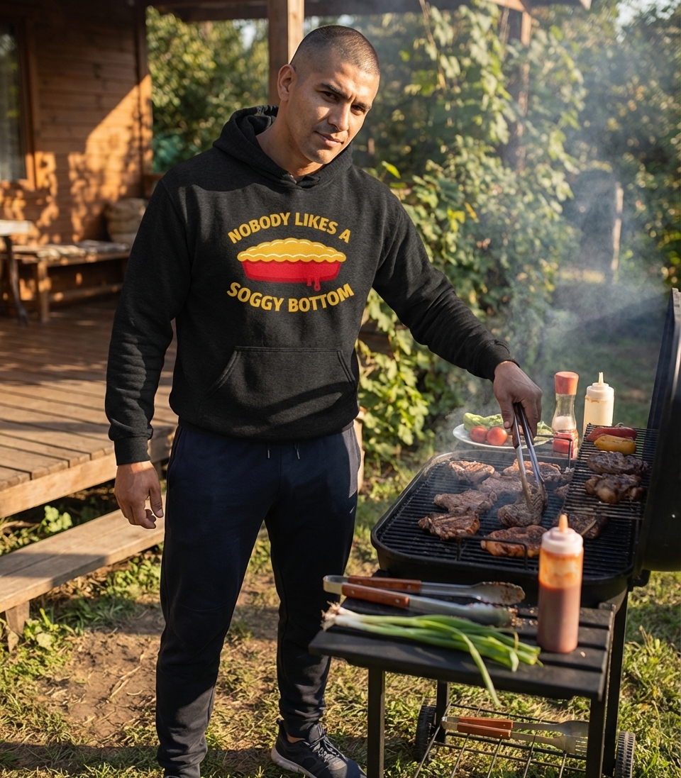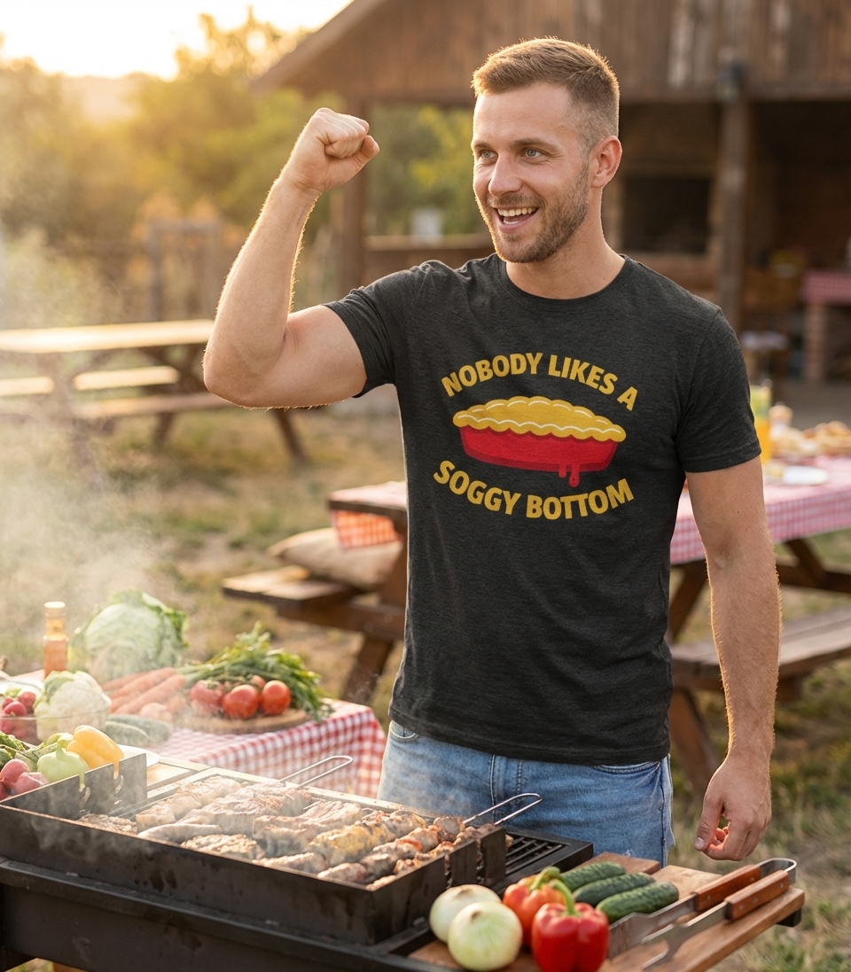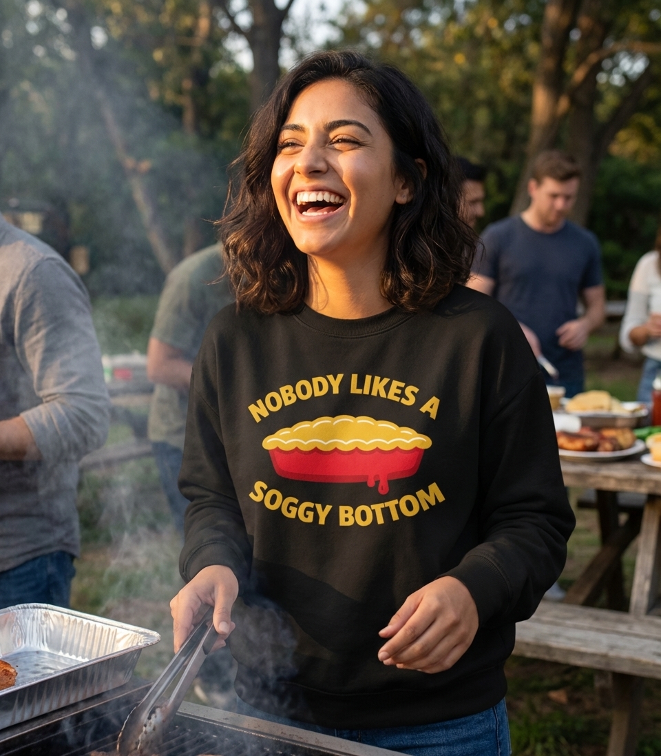The 'Nobody Likes a Soggy Bottom' phrase captures the lifestyle of passionate home bakers who spend their days perfecting crusts, creating delicious fillings, and sharing their culinary creations.