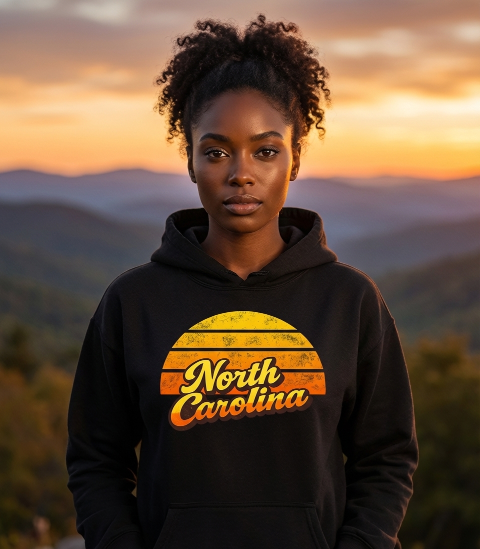 Yes! Check the style selector above to see all available options including hoodies and sweatshirts for the North Carolina Retro Sunset graphic.