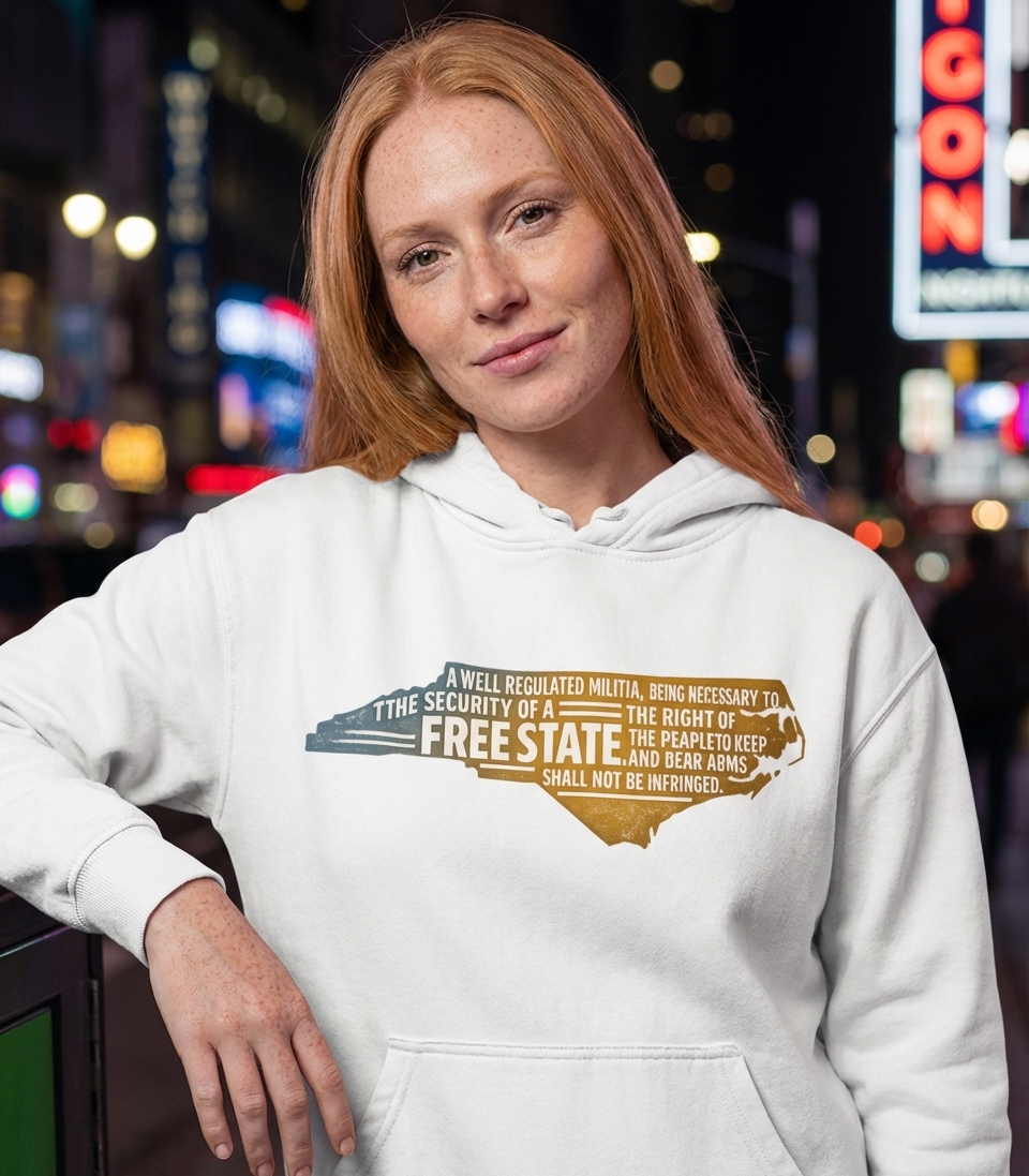 The North Carolina outline combined with the Second Amendment text captures the spirit of citizens who value constitutional freedoms and state pride.
